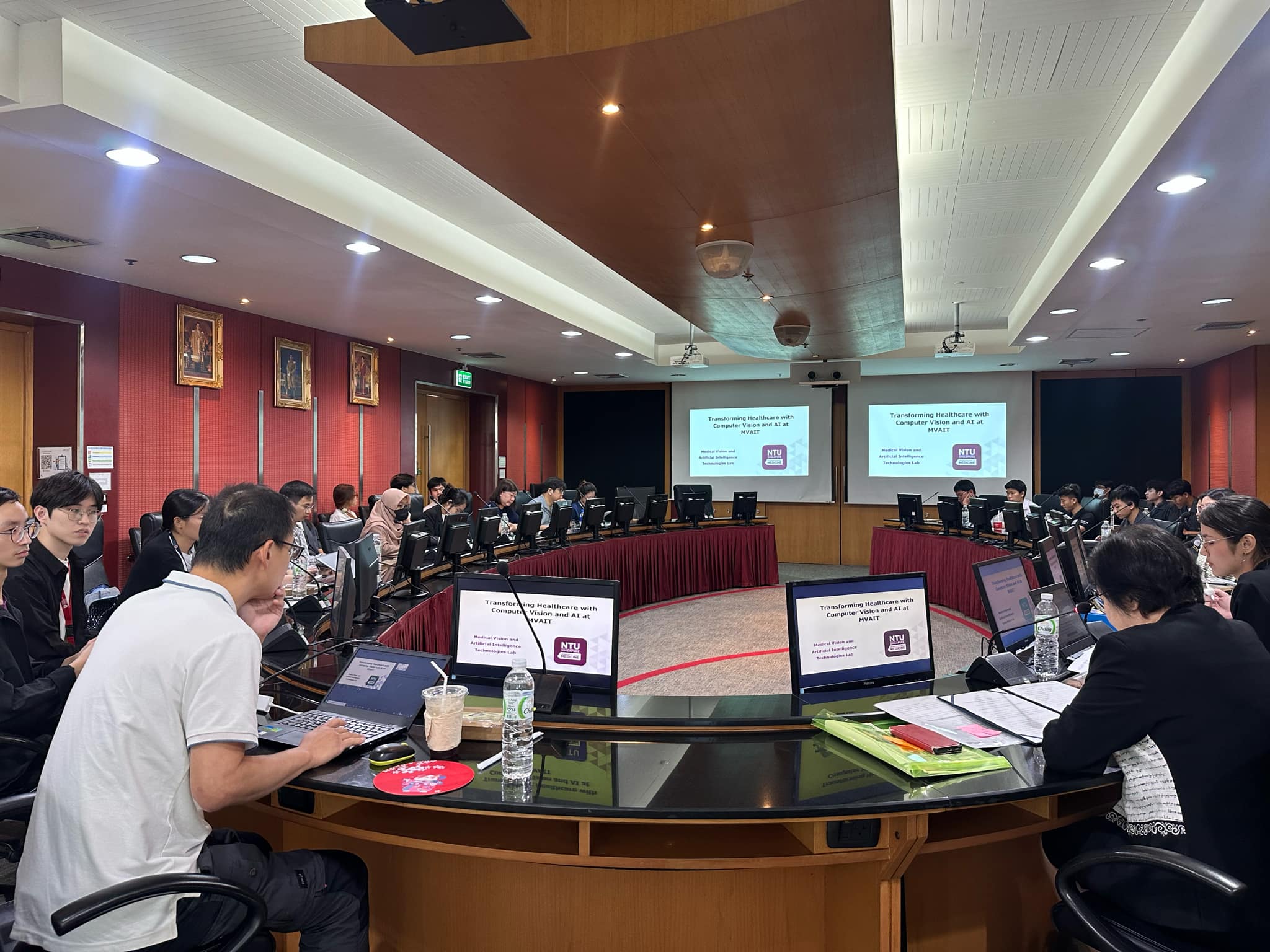 นอกจากนี้นักศึกษาในห้องปฏิบัติการ LKCMedicine ได้นำเสนอผลงานวิจัยของตนเอง ได้แก่ Miss Chen Yucheng นักศึกษาปริญญาเอกได้นำเสนอหัวข้อ “Medical Report Generation” โดยเน้นการประยุกต์ใช้เทคโนโลยี AI ในการสร้างรายงานทางการแพทย์แบบมืออาชีพโดยอัตโนมัติจากข้อมูลภาพที่ป้อนเข้าสู่ระบบอย่างแม่นยำและมีประสิทธิภาพ, Mr. Shi Yufei นักศึกษาปริญญาเอก ได้นำเสนอหัวข้อ “ColonNeRF: High-Fidelity Neural Reconstruction of Long Colonoscopy” ซึ่งเน้นการสร้างภาพ 3 มิติของลำไส้ใหญ่ด้วย Neural Reconstruction ที่มีความละเอียดสูง และ Mr. Kritsanavis Chongsrid นักศึกษาปริญญาเอก ได้นำเสนอหัวข้อ “Deep-Learning-Based System for Medical Imaging Data Analysis in Surgical Planning and Guidance” ซึ่งเป็นการใช้ระบบปัญญาประดิษฐ์แบบลึกในการวิเคราะห์ข้อมูลภาพทางการแพทย์เพื่อการวางแผนและการนำทางในหัตถการ