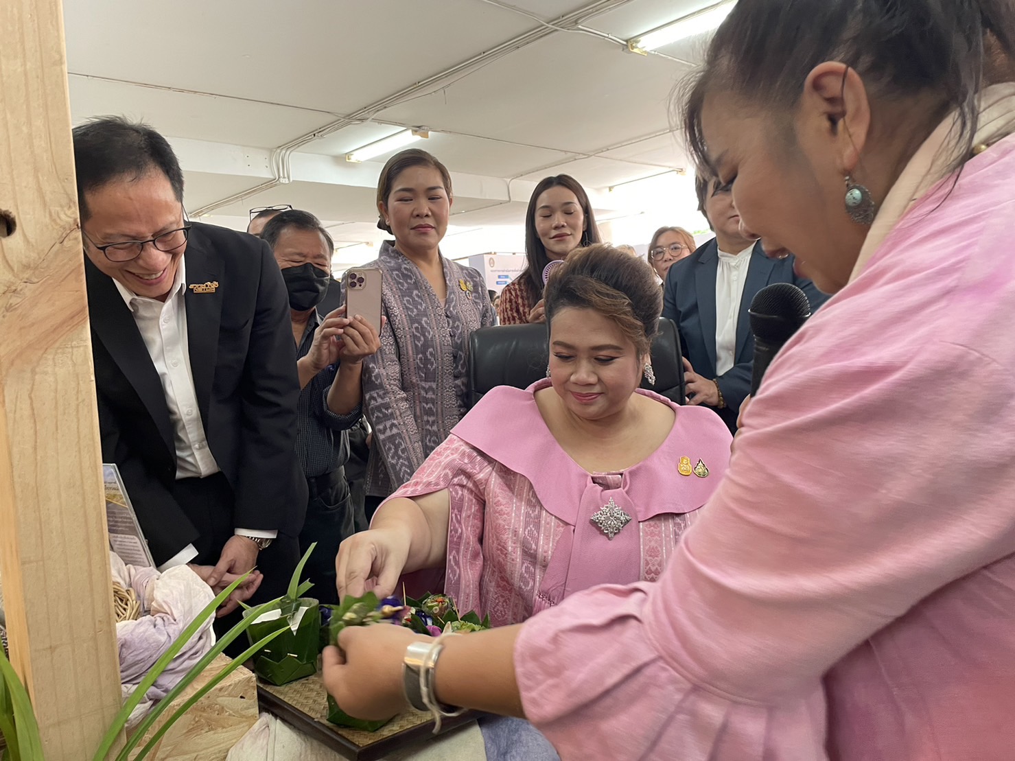 โอกาสนี้ รัฐมนตรี อว. ได้เยี่ยมชมผลงานของ สวทช. ในด้านการแก้ไขความยากจนลดความเหลื่อมล้ำ และการพัฒนาชุมชนเชิงพื้นที่ (Area-Based & Community) แบบครบห่วงโซ่ โดยใช้ BCG economy model เพื่อยกระดับเศรษฐกิจฐานราก ภายใต้โครงการนำร่อง “การใช้ BCG Model ขับเคลื่อนชุมชนฐานการผลิตข้าวเหนียวให้มีการสร้างมูลค่าเพิ่มแบบครบวงจร โดยใช้เทคโนโลยีและนวัตกรรมที่อิงกับวัฒนธรรมพื้นถิ่น: BCG NAGA belt road” โดยมี ดร. วรรณพ วิเศษสงวน ผู้อำนวยการไบโอเทค สวทช. พร้อมด้วย ดร.อรรจนา ด้วงเเพง อาจารย์คณะเทคโนโลยี มหาวิทยาลัยราชภัฏอุดรธานี ทีมนักวิจัยจากไบโอเทค สวทช. และกลุ่มเกษตรกรในโครงการร่วมนำเสนอผลงาน