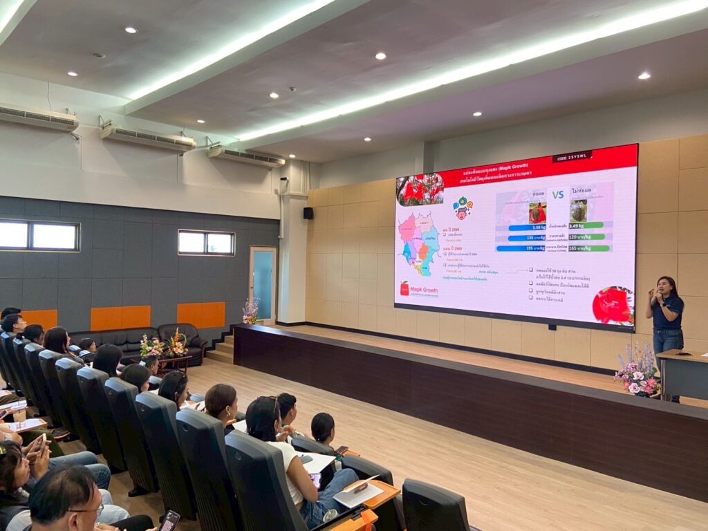 เมื่อวันที่ 17 ธันวาคม 2568 สถาบันการจัดการเทคโนโลยีและนวัตกรรมเกษตร (สท.) สวทช. ร่วมกิจกรรม “แลกเปลี่ยนเรียนรู้ พัฒนายุวเกษตรกร และเกษตรกรรุ่นใหม่ มุ่งสู่ Young Smart Agri-Enterpreneur ตามกิจกรรมพัฒนายุวเกษตรกรในระดับอุดมศึกษา และพัฒนาเกษตรกรรุ่นใหม่ให้เป็น Young Smart Farmer ปี 2569” ณ คณะเทคโนโลยีสังคม มหาวิทยาลัยเทคโนโลยีราชมงคลตะวันออก วิทยาเขตจันทบุรี อำเภอเขาคิชฌกูฏ จังหวัดจันทบุรี โดย น.ส.กนกพร ลิมวิภูวัฒน์ นักวิชาการอาวุโส ฝ่ายถ่ายทอดเทคโนโลยี และคณะ ร่วมให้ความรู้เทคโนโลยีและนวัตกรรมสำหรับการผลิตทุเรียนคุณภาพ ได้แก่ ระบบฟาร์มรักษ์น้ำ Magik Growth: ถุงห่อทุเรียน และชีวภัณฑ์ โดยมีสมาชิกยุวเกษตรกร เกษตรรุ่นใหม่ และเจ้าหน้าที่เกษตรจังหวัดจันทบุรี รวม 120 คน เข้าร่วมกิจกรรมกิจกรรมนี้จัดโดยสำนักงานเกษตรจังหวัดจันทบุรี โดยความร่วมมือระหว่างภาครัฐ ภาคเอกชน และสถาบันการศึกษา เพื่อเป็นเวทีแลกเปลี่ยนเรียนรู้ ถ่ายทอดองค์ความรู้ เทคโนโลยีและนวัตกรรมด้านเกษตรที่เหมาะสมกับบริบทพื้นที่ ตลอดจนส่งเสริมการพัฒนาทักษะด้านการคิดวิเคราะห์ การเป็นผู้ประกอบการเกษตรยุคใหม่ และการสร้างเครือข่ายการเรียนรู้ระหว่างยุวเกษตรกร เกษตรกรรุ่นใหม่ และ Young Smart Farmer รุ่นพี่ เวทีแลกเปลี่ยนเรียนรู้ครั้งนี้เป็นกลไกสำคัญพัฒนาศักยภาพคนรุ่นใหม่ด้านการเกษตร สร้างแรงบันดาลใจการประกอบอาชีพเกษตรกรรมสมัยใหม่ และต่อยอดสู่การเป็นผู้ประกอบการเกษตรอัจฉริยะที่มีความรู้ เท่าทันการเปลี่ยนแปลง และสามารถขับเคลื่อนภาคการเกษตรของจังหวัดจันทบุรีให้เติบโตอย่างมั่นคงและยั่งยืน สท. นำนวัตกรรมร่วมเวที “เสริมศักยภาพยุวเกษตรกรและเกษตรกรรุ่นใหม่จันทบุรี ขับเคลื่อนสู่ Young Smart Agri-Entrepreneur” Post Views: 9 Tagged on: ขีวภัณฑ์ ถุงห่อทุเรียน ระบบฟาร์มรักษ์น้ำ สำนักงานเกษตรจังหวัดจันทบุรี เกษตรกรรุ่นใหม่