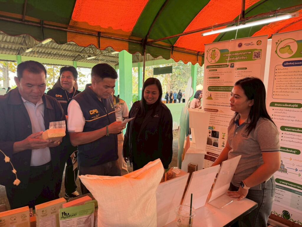 เมื่อวันที่ 17 ธันวาคม 2568 น.ส.ณิฎฐา คุ้มโต นักวิชาการอาวุโส ฝ่ายถ่ายทอดเทคโนโลยี สถาบันการจัดการเทคโนโลยีและนวัตกรรมเกษตร (สท.) และคณะ ร่วมออกบูธนิทรรศการ “งานวันถ่ายทอดเทคโนโลยีการผลิตเมล็ดพันธุ์ถั่วเขียว” ณ อาคารอเนกประสงค์ นิคมสหกรณ์แม่สอด ต.แม่กาษา อ.แม่สอด จ.ตาก โดยได้นำเสนอและให้ความรู้การผลิตเมล็ดพันธุ์ถั่วเขียว KUML ตั้งแต่กระบวนการผลิตจนถึงการจัดการหลังเก็บเกี่ยว เพื่อรักษาคุณภาพของเมล็ดพันธุ์กิจกรรมดังกล่าวจัดโดยสถาบันวิจัยพืชไร่และพืชทดแทนพลังงาน กรมวิชาการเกษตร ภายใต้โครงการผลิตเมล็ดพันธุ์พืชตระกูลถั่วเพื่อเพิ่มศักยภาพการผลิตและยกระดับเศรษฐกิจชุมชนอย่างยั่งยืน เพื่อถ่ายทอดและสาธิตเทคโนโลยีการผลิตเมล็ดพันธุ์ถั่วเขียวให้เกษตรกรสามารถผลิตเมล็ดพันธุ์ถั่วเขียวได้อย่างมีประสิทธิภาพ แลกเปลี่ยนความคิดเห็นด้านการผลิตเมล็ดพันธุ์ถั่วเขียวระหว่างเกษตรกร นักวิชาการ และผู้ประกอบการ ตลอดจนเกิดเครือข่ายความร่วมมือพัฒนาการผลิตเมล็ดพันธุ์ สท. ร่วมให้ความรู้ผลิต “เมล็ดพันธุ์ถั่วเขียว KUML” ในงานวันถ่ายทอดเทคโนโลยีการผลิตเมล็ดพันธุ์ถั่วเขียว Post Views: 8 Tagged on: ถั่วเขียว KUML