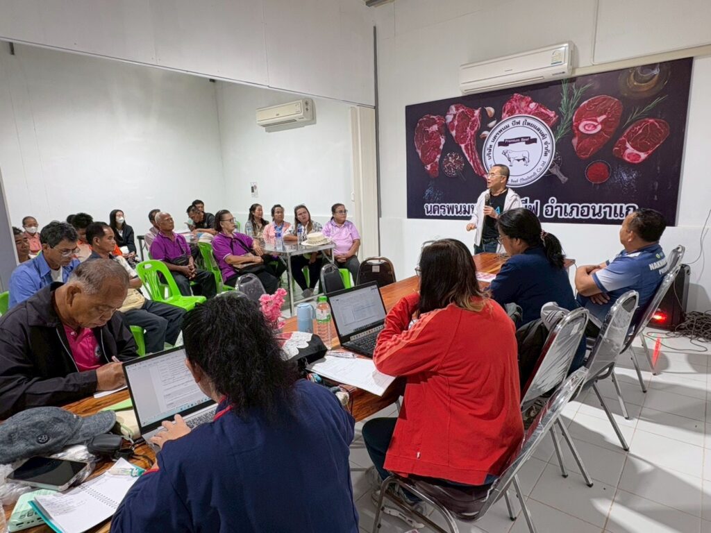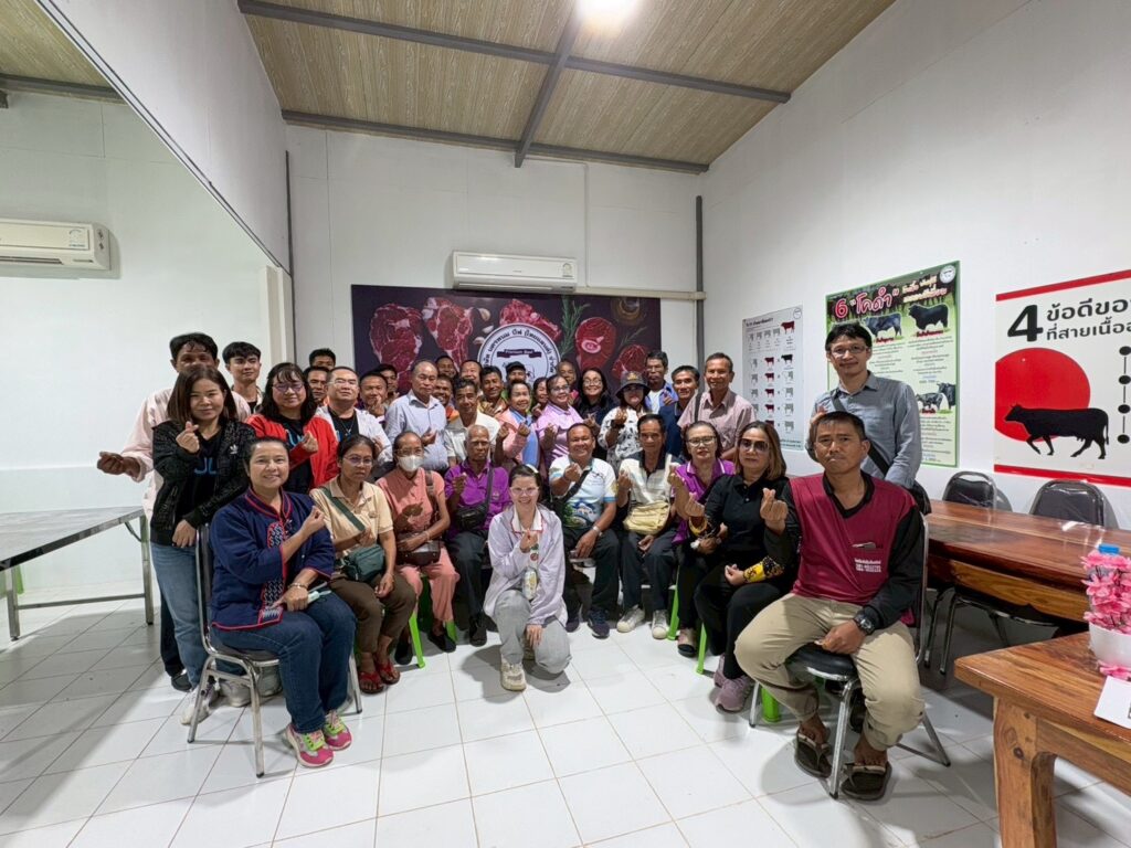 เมื่อวันที่ 23-24 เมษายน 2569 สถาบันการจัดการเทคโนโลยีและนวัตกรรม (สท.) สวทช. ร่วมกับมหาวิทยาลัยราชภัฏอุบลราชธานี นำเครือข่ายเกษตรกรผู้เลี้ยงโคเนื้อในพื้นที่ทุ่งกุลาร้องไห้ ศึกษาดูงานการเลี้ยงโคขุน ณ สัตว์แสนสุขฟาร์ม บ้านดานสาวคอย ต.นาแก อ.นาแก จ.นครพนม และฟาร์มเครือข่ายของบริษัท นครพนม บีฟ (ไทยแลนด์) จำกัด เกษตรกรได้เรียนรู้และแลกเปลี่ยนประสบการณ์การเลี้ยงโคขุนในแต่ละระยะ การผลิตอาหารโคขุน การบริหารจัดการฟาร์ม ไปจนถึงระบบการจัดการของโรงเชือด การจัดการเนื้อหลังเชือด และการจำหน่ายเนื้อ นอกจากนี้เครือข่ายเกษตรกรยังได้ร่วมประชุมหารือการซื้อขายโคเนื้อกับบริษัท นครพนมบีฟ จำกัด ด้วยเครือข่ายเกษตรกรผู้เลี้ยงโคขุนที่ร่วมศึกษาดูงานในครั้งนี้ ประกอบด้วย วิสาหกิจชุมชนผู้เลี้ยงโคเนื้อบ้านเหล่างาม วิสาหกิจชุมชนกลุ่มข้าวหอมมะลิเพชรทุ่งกุลาร้องไห้ สหกรณ์การเกษตรเกษตรวิสัย กลุ่มเลี้ยงโคเนื้อสร้างอาชีพระยะที่ 2 หนองฮี กลุ่มผู้เลี้ยงโคเนื้อบ้านหินกอง จังหวัดร้อยเอ็ด กลุ่มผู้เลี้ยงโคเนื้อ-กระบือก้าวหน้าเมืองบัว วิสาหกิจชุมชนโคเนื้อวากิวหนองสิม กลุ่มผู้เลี้ยงโคเนื้อหนองเรือ จังหวัดสุรินทร์ วิสาหกิจโคเนื้อโคขุนบ้านเมืองแคน กลุ่มผู้เลี้ยโคเนื้อบ้านหนองพอก กลุ่มเกษตรกรผู้เลี้ยงโคเนื้อสร้างปี่ กลุ่มปลูกหญ้าเลี้ยงสัตว์บ้านโนนสังข์ จังหวัดศรีสะเกษ และกลุ่มผู้เลี้ยงโคเนื้อบ้านหนองแคน จังหวัดมหาสารคามกิจกรรมครั้งนี้ดำเนินงานภายใต้โครงการ “การพัฒนายกระดับเกษตรกรผู้เลี้ยงโคเนื้อพื้นที่ทุ่งกุลาร้องไห้ด้วยเทคโนโลยีและนวัตกรรม” เพื่อยกระดับเกษตรกรผู้เลี้ยงโคเนื้อในพื้นที่ทุ่งกุลาร้องไห้ตลอดห่วงโซ่การผลิตโคเนื้อ เกิดการลดต้นทุน สร้างรายได้เพิ่ม นำไปสู่การพึ่งพาตนเองได้ในระยะยาวอย่างยั่งยืน โดยได้ถ่ายทอดเทคโนโลยีเหนี่ยวนำการตกไข่และผสมเทียมแม่พันธุ์โคเนื้อ พัฒนานวัตกรด้านการผสมเทียม ผลิตโคเนื้อคุณภาพตรงตามความต้องการของตลาด รวมถึงเชื่อมโยงตลาดรับซื้อกับเครือข่ายผู้เลี้ยงโคเนื้อพื้นที่ทุ่งกุลาร้องไห้ สท. นำเกษตรกรผู้เลี้ยงโคขุนทุ่งกุลา แลกเปลี่ยนเรียนรู้เลี้ยงโคเนื้อตลอดห่วงโซ่การผลิต-เชื่อมโยงซื้อขายโคเนื้อกับตลาดรับซื้อ Post Views: 7 Tagged on: ทุ่งกุลาร้องไห้ โคขุน โคเนื้อ
