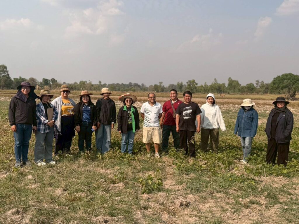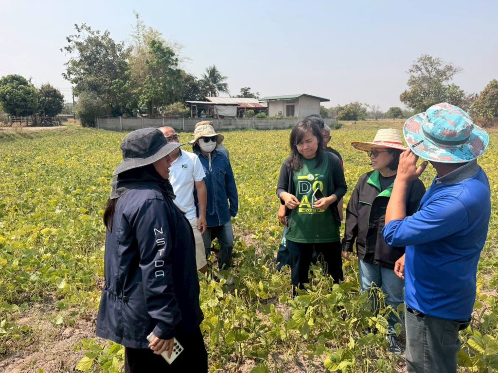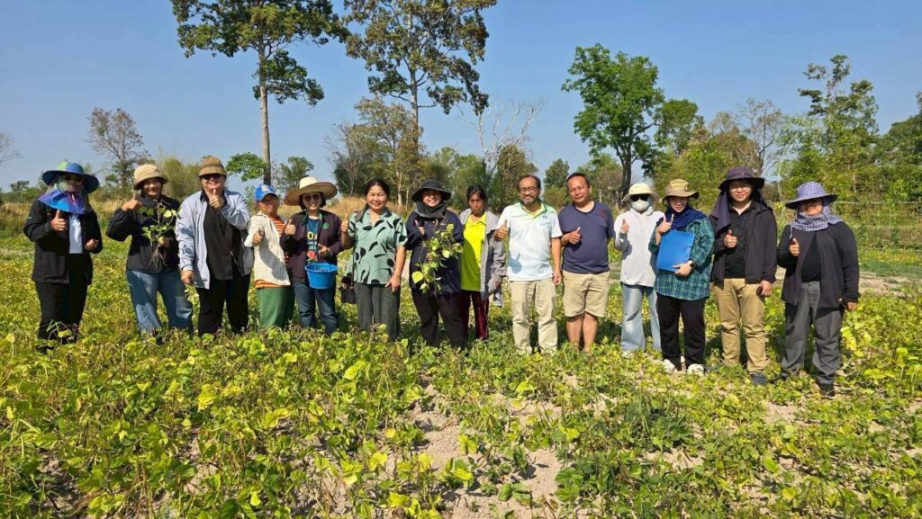เมื่อวันที่ 20-22 กุมภาพันธ์ 2569 น.ส.ณิฎฐา คุ้มโต นักวิชาการอาวุโส สถาบันการจัดการเทคโนโลยีและนวัตกรรมเกษตร (สท.) สวทช. และทีมงาน พร้อมด้วย รศ.ดร.ประกิต สมท่า และ ผศ.ดร.กนกวรรณ เที่ยงธรรม มหาวิทยาลัยเกษตรศาสตร์ วิทยาเขตกำแพงแสน ลงพื้นที่ติดตามและให้คำแนะนำเกษตรกรผู้ปลูกถั่วเขียว KUML ใน 9 อำเภอของจังหวัดยโสธร (อ.ป่าติ้ว อ.ไทยเจริญ อ.เลิงนกทา อ.กุดชุม อ.ทรายมูล อ.เมืองยโสธร อ.มหาชัยชนะ และอ.คำเขื่อนแก้ว) โดยมีคณะเจ้าหน้าที่จากสำนักงานเกษตรจังหวัดยโสธรและสำนักงานเกษตรอำเภอร่วมลงพื้นที่ด้วยกิจกรรมครั้งนี้ดำเนินงานภายใต้โครงการการถ่ายทอดเทคโนโลยีการผลิตถั่วเขียวพันธุ์ KUML4 และ KUML8 แบบครบวงจร ให้ได้ผลผลิตสูงและคุณภาพดี ด้วยกลไกตลาดนำการผลิต ในพื้นที่จังหวัดยโสธรและจังหวัดสุรินทร์ ซึ่งได้รับการสนับสนุนจากสำนักงานพัฒนาการวิจัยการเกษตร (องค์การมหาชน) สท. ผนึกม.เกษตรศาสตร์-สนง.เกษตรยโสธร ติดตามการผลิตถั่วเขียว KUML เกษตรกร 9 อำเภอ Post Views: 2 Tagged on: ถั่วเขียว KUML ยโสธร สวก.