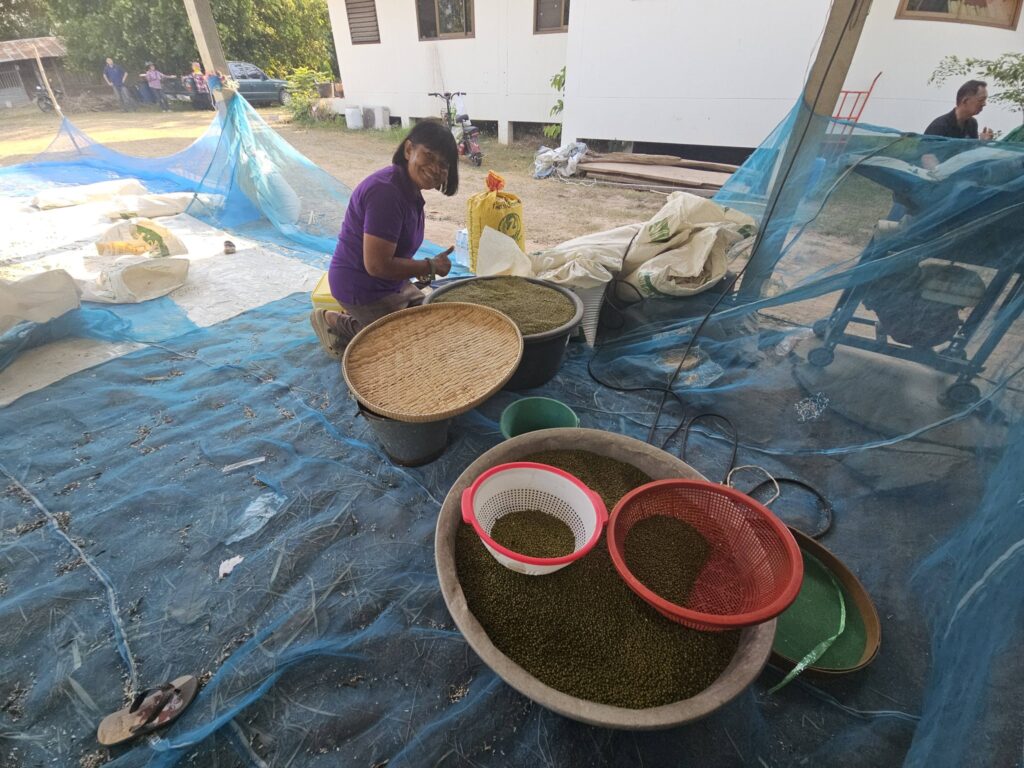 เมื่อวันที่ 8 เมษายน 2569 น.ส.ณิฎฐา คุ้มโต นักวิชาการอาวุโส สถาบันการจัดการเทคโนโลยีและนวัตกรรมเกษตร (สท.) สวทช. และทีมงาน รับคณะผู้ตรวจประเมินการดำเนินงานของ สท. ณ วิสาหกิจชุมชนศูนย์ผลิตเมล็ดพันธุ์ชุมชนตำบลน้ำเกลี้ยง อำเภอน้ำเกลี้ยง จังหวัดศรีสะเกษ โดยมีกลุ่มเกษตรกรผู้ปลูกถั่วเขียว KUML อำเภอไพรบึง และกลุ่มเกษตรกรผู้ผลิตเมล็ดพันธุ์ถั่วเขียว KUML อำเภอเมืองจันทร์และอำเภอน้ำเกลี้ยง พร้อมด้วยเจ้าหน้าที่สำนักงานเกษตรอำเภอ และคุณขวัญรัตน์ จงเสรีจิตต์ ห้างหุ้นส่วนจำกัด ศิริบูรณ์จงเจริญไพศาล ภาคเอกชนที่รับซื้อผลผลิตถั่วเขียว ร่วมให้ข้อมูลแก่คณะผู้ตรวจประเมินและในวันที่ 9 เมษายน 2569 ทีมงาน สท. ได้ลงพื้นที่เก็บข้อมูลเกษตรกรผู้ปลูกถั่วเขียว KUML กลุ่มผลิตเมล็ดพันธุ์ข้าวพระราชทานเพื่อนช่วยเพื่อน ตำบลเกาะแก้ว อำเภอสำโรงทาบ จังหวัดสุรินทร์ นอกจากนี้ยังได้ทดสอบการใช้เครื่องกระเทาะฝักถั่วเขียวที่พัฒนาโดยนายดุสิต ตั้งพิสิฐโยธิน วิศวกรอาวุโส ศูนย์เทคโนโลยีโลหะและวัสดุแห่งชาติ (เอ็มเทค) สวทช. ซึ่งจะช่วยให้เกษตรกรสามารถจัดการผลผลิตถั่วเขียวหลังเก็บเกี่ยวได้สะดวกยิ่งขึ้น สท. เดินหน้างานถั่วเขียว KUML รับคณะผู้ตรวจประเมินที่ศรีสะเกษ ทดสอบใช้เครื่องกระเทาะฝักถั่วเขียวกับเกษตรกรสุรินทร์ Post Views: 3