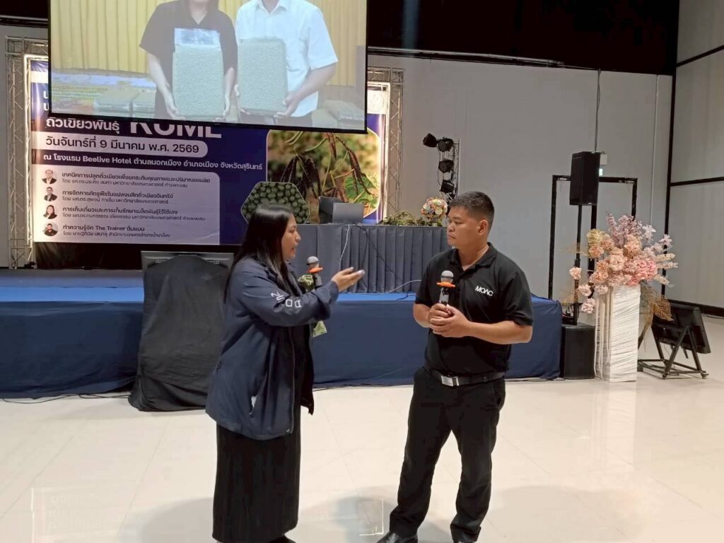 เมื่อวันที่ 9 มีนาคม 2569 สถาบันการจัดการเทคโนโลยีและนวัตกรรมเกษตร (สท.) สวทช. ร่วมกับมหาวิทยาลัยเกษตรศาสตร์ วิทยาเขตกำแพงแสน กลุ่มส่งเสริมพืชน้ำมันและพืชตระกูลถั่ว สำนักส่งเสริมและจัดการสินค้าเกษตร กรมส่งเสริมการเกษตร และสำนักงานเกษตรจังหวัดสุรินทร์ จัดอบรมเชิงปฏิบัติการหลักสูตร “Train the trainer เทคโนโลยีการปลูกพืชหลังนาแบบครบวงจร: ถั่วเขียวพันธุ์ KUML” ณ โรงแรมบีลีฟ จ.สุรินทร์ โดยมีเจ้าหน้าที่เกษตรตำบล เจ้าหน้าที่เกษตรอำเภอ และเจ้าหน้าที่จากสำนักงานเกษตรจังหวัดสุรินทร์ รวมถึงเจ้าหน้าที่หน่วยงานส่วนท้องถิ่นและเกษตรกรแกนนำ รวม 140 คน เข้าร่วมกิจกรรม และได้รับเกียรติจากนางรัตดา คงสีไพร เกษตรจังหวัดสุรินทร์ เป็นประธานเปิดงาน ซึ่งผู้เข้าร่วมกิจกรรมได้รับความรู้จากทีมวิทยากร ได้แก่ รศ.ดร.ประกิจ สมท่า ผศ.ดร.กนกวรรณ เที่ยงธรรม มหาวิทยาลัยเกษตรศาสตร์ วิทยาเขตกำแพงแสน และ ผศ.ดร.สุพจน์ กาเซ็ม หัวหน้าภาควิชาโรคพืช มหาวิทยาลัยเกษตรศาสตร์ บางเขน อีกทั้งได้แลกเปลี่ยนเรียนรู้กับนายฐิตินัย เสนาสุ สำนักงานเกษตรอำเภอน้ำเกลี้ยง จังหวัดศรีสะเกษ ซึ่งเป็น The Trainer ต้นแบบกิจกรรมครั้งนี้มุ่งสร้างบุคลากรจากสำนักงานเกษตรจังหวัด เจ้าหน้าที่เกษตรอำเภอและเจ้าหน้าที่เกษตรตำบล ให้มีองค์ความรู้เรื่องการปลูกถั่วเขียว KUML เป็นพืชหลังนา สามารถประเมินและคัดเลือกพื้นที่ที่เหมาะสมกับการปลูกถั่วเขียว และให้ความรู้ที่ถูกต้องตามหลักวิชาการแก่เกษตรกรในพื้นที่ได้ เกิดการขยายผลการผลิตถั่วเขียว KUML เป็นพืชหลังนาที่สร้างรายได้ให้เกษตรกรและลดการเผาหลังการทำนาอนึ่ง สวทช. โดย สท. ได้รับทุนสนับสนุนจากสำนักงานพัฒนาการวิจัยการเกษตร (องค์การมหาชน) หรือ สวก.ดำเนินงานถ่ายทอดเทคโนโลยีการผลิตถั่วเขียว KUML ด้วยกลไกตลาดนำการผลิตเป็นปีที่ 3 โดยในปีนี้มุ่งเน้นการทำงานในพื้นที่จังหวัดยโสธรและจังหวัดสุรินทร์ สท.-ม.เกษตรศาสตร์-สนง.เกษตรสุรินทร์ ติวเข้มเจ้าหน้าที่เกษตรเป็นพี่เลี้ยงเกษตรกรปลูกถั่วเขียว KUML Post Views: 3 Tagged on: Train the trainer ถั่วเขียว KUML สำนักงานเกษตรจังหวัดสุรินทร์