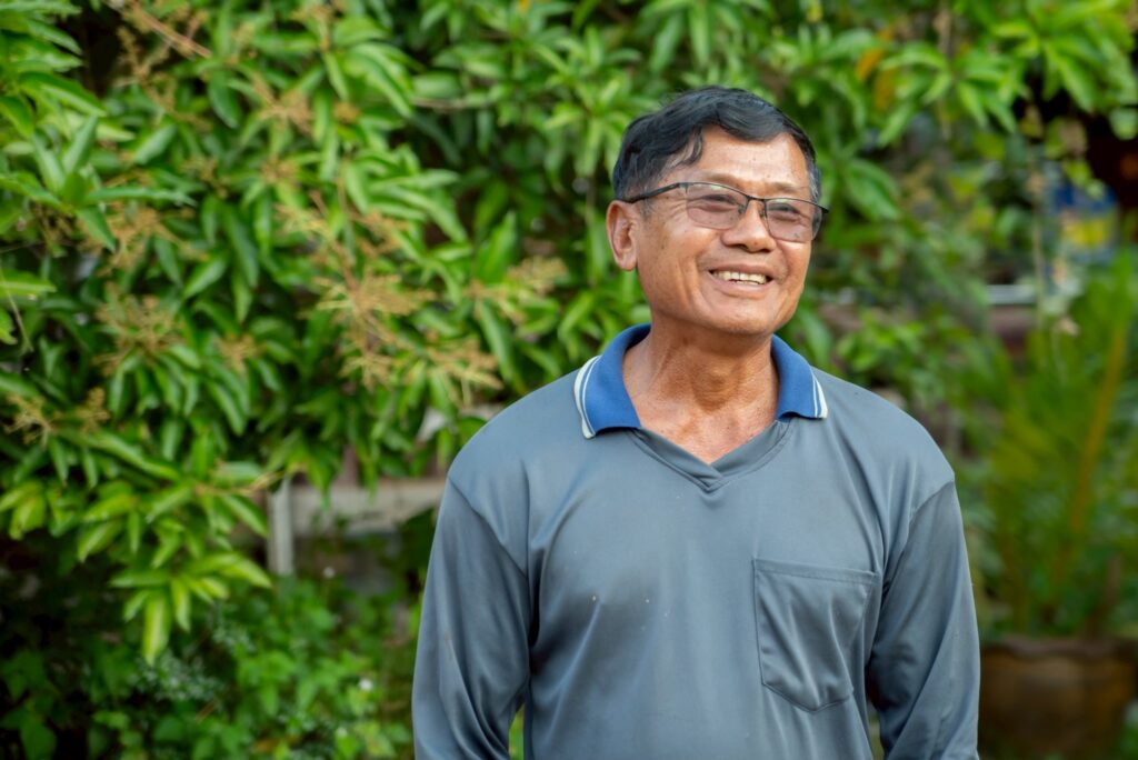 “เราเห็นรุ่นพี่เกษียณไปแล้วไม่ได้ทำอะไร ได้แต่นั่งๆ นอนๆ เงินบำนาญไม่ได้มาก เราไม่อยากเป็นแบบนั้น ก็มาคุยกันว่าจะทำอะไรให้มีความสุขและเห็นตรงกันว่าต้องเรียนรู้ก่อนเกษียณ ร่างกายเรายังได้ ถ้าเราเตรียมตัวก่อน เกษียณแล้วเรามีผลผลิตได้กิน ได้แจกจ่ายเพื่อน ความสุขก็ตามมา พอมันเหลือ ได้ขายมีรายได้เล็กๆ น้อยๆ เราก็ตัดสินใจซื้อที่ทำสวนไว้ เวลาทำงานเครียดแล้วเข้าสวน มันมีความสุข เกิดความชอบ ถ้าไม่ชอบคงไม่เดินมาถึงวันนี้ ไม่ได้คิดว่าเกษตรเป็นงานหนัก คิดแค่ว่าร่างกายเราเท่านี้ เราไม่ทำฝืนร่างกายตัวเอง เราเรียนรู้มาเรื่อยๆ ที่จะทำในระดับที่เพียงพอกับความสุขของเรา”