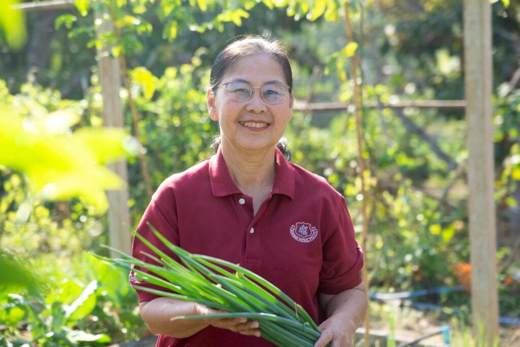 “ตอนรวมกลุ่มไม่มีความรู้ปลูกผักเลย ปลูกตามความรู้ดั้งเดิม ส่วนเกษตรอินทรีย์รู้แค่ว่าไม่ใช้ยาฆ่าแมลง แต่จริงๆ แล้วมันต้องเริ่มตั้งแต่ดินและน้ำ แล้วได้ไปเรียนที่ม.แม่โจ้ ได้ความรู้เยอะมาก รู้จักการปลูกผักตั้งแต่เพาะเมล็ด ก็ทำให้รู้ว่าเพาะลงตะกร้าแล้วเลือกไปลงถาดหลุม เราจะได้เลือกกล้าที่มีคุณภาพและรู้ว่าจะได้กี่ต้น ควบคุมปริมาณได้ ผลผลิตเห็นชัด เพราะเราได้เลือกต้นพันธุ์ที่ดี หรือการใช้วัสดุเพาะจากแหนแดง ไม่ต้องใช้พีทมอส ก็ลดต้นทุนเราได้”