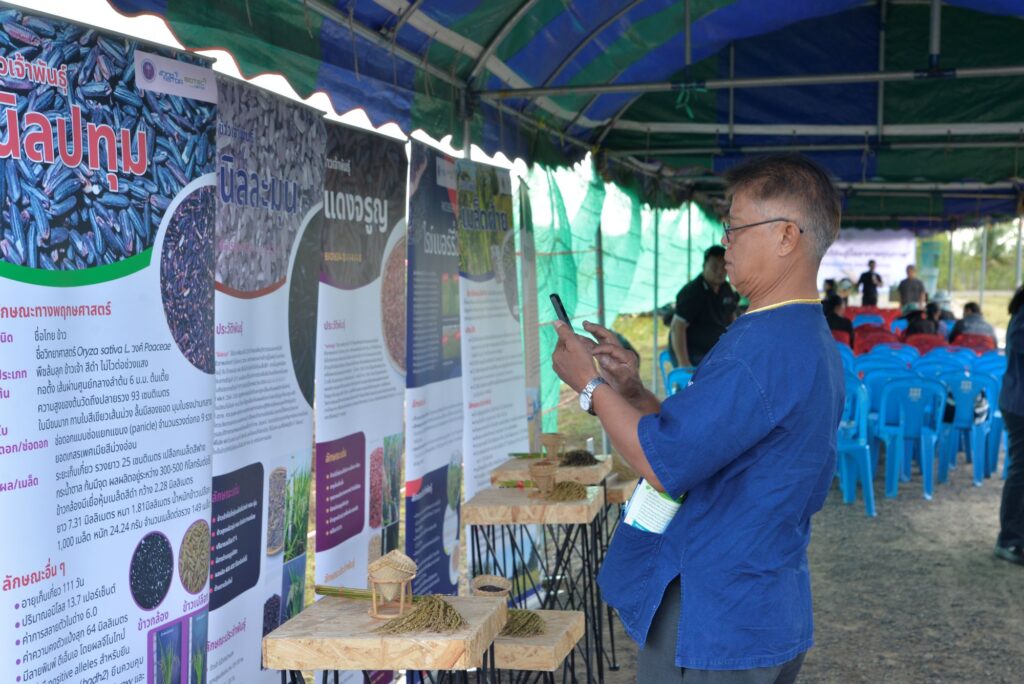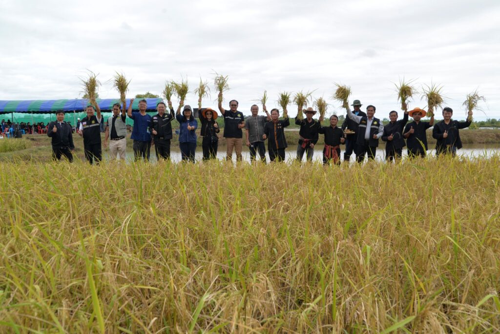 เมื่อวันที่ 4 พฤศจิกายน 2568 สถาบันการจัดการเทคโนโลยีและนวัตกรรมเกษตร (สท.) สวทช. ร่วมกับสำนักงานเกษตรอำเภอราษีไศล จังหวัดศรีสะเกษ จัดกิจกรรม “นวัตกรรมข้าวไทยจากงานวิจัยสู่มื้ออาหารคุณภาพ” ณ บ้านหนองกก ต.บัวหุ่ง อ.ราษีไศล จ.ศรีสะเกษ เพื่อสร้างการรับรู้และถ่ายทอดเทคโนโลยีให้แก่เกษตรกรและผู้ที่สนใจ โดยได้รับเกียรติจากนายณรงค์กร เผื่อแผ่ นายอำเภอราษีไศล เป็นประธานในพิธี น.ส.วิราภรณ์ มงคลไชยสิทธิ์ ผู้ช่วยผู้อำนวยการ สวทช. และ ผศ.ดร.จิรวัฒน์ สนิทชน ผู้เชี่ยวชาญด้านการปรับปรุงพันธุ์ข้าว เข้าร่วมกิจกรรมเกี่ยวข้าวและชิมข้าวสายพันธุ์ใหม่สท. ได้ดำเนินงานถ่ายทอดองค์ความและเทคโนโลยีเพื่อแก้ปัญหาการผลิตข้าวในพื้นที่ทุ่งกุลาร้องไห้ ภายใต้โครงการ “ยกระดับการผลิตพืชในพื้นที่ทุ่งกุลาร้องไห้ด้วยวิทยาศาสตร์ เทคโนโลยีและนวัตกรรม” นำร่องที่บ้านหนองกก ต.บัวหุ่ง อ.ราษีไศล จ.ศรีสะเกษ โดยส่งเสริมการผลิตข้าวสายพันธุ์ใหม่ “กลุ่มข้าวสีโภชนาการสูง” ได้แก่ นิลละมุน นิลปทุม แดงจรูญ และไรซ์เบอรี่ 2 ซึ่งเป็นพันธุ์ที่มีคุณสมบัติต้านทานโรคและให้ผลผลิตสูง เหมาะกับสภาพพื้นที่ของบ้านหนองกกที่มีโอกาสประสบปัญหาน้ำท่วมนาข้าวทุกปี นอกจากนี้ยังได้นำองค์ความรู้และเทคโนโลยีการใช้เชื้อจุลินทรีย์ทางการเกษตร (ไตรโครเดอร์มา และบาซิลัส ซับทีลิส) เพื่อเร่งย่อยสลายตอซัง ช่วยให้เกษตรกรสามารถทำนาปรังต่อเนื่องจากนาปีได้ทันที อีกทั้งช่วยป้องกันและกำจัดโรคจากเชื้อราและแบคทีเรีย รวมถึงเทคโนโลยีปุ๋ยคีเลต และปุ๋ย CRF (Controlled Release Fertilizer) ยกระดับการดูดซึมธาตุอาหารและเพิ่มคุณภาพผลผลิตข้าว ตลอดจนการใช้สารชีวภัณฑ์ VipPro ป้องกันและกำจัดหนอนกอข้าว สท. พลิกโฉมข้าวทุ่งกุลาฯ ด้วย ‘นวัตกรรมข้าวไทย’ สู่การผลิตอาหารคุณภาพอย่างยั่งยืน Post Views: 17 Tagged on: ข้าวสายพันธุ์ใหม่ บ้านหนองกก ต.บัวหุ่ง อ.ราษีไศล จ.ศรีสะเกษ