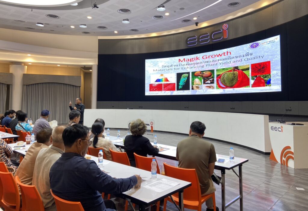 เมื่อวันที่ 30 มกราคม 2569 สถาบันการจัดการเทคโนโลยีเกษตรและนวัตกรรม (สท.) สวทช. ร่วมกับสำนักงานเกษตรจังหวัดระยอง จัดกิจกรรมเสวนาหัวข้อ “ทุเรียน 2569 ปีแห่งการแข่งขัน เร่งสร้างโอกาส สร้างตลาดทางเลือก ทุเรียน อร่อย…เลือกได้” และกิจกรรมอบรมเชิงปฏิบัติการเรื่อง “การใช้ถุงห่อ Magik Growth เพื่อลดการใช้สารเคมี และเพิ่มคุณภาพทุเรียนให้สวนทุเรียน” ณ สำนักงานเขตนวัตกรรมระเบียงเศรษฐกิจพิเศษภาคตะวันออก (EECi) ตำบลป่ายุบใน อำเภอวังจันทร์ จังหวัดระยอง โดยได้รับเกียรติจากนายพีทัศน์ อุ่นจิตตพันธ์ รองอธิบดีกรมส่งเสริมการเกษตร เป็นประธานเปิดงานและร่วมลงพื้นที่เปิดฤดูกาลห่อผลทุเรียนด้วยถุงห่อ Magik Growth กิจกรรมครั้งนี้เกษตรกรชาวสวนทุเรียนจากจังหวัดระยองและจังหวัดใกล้เคียงที่เข้าร่วมกิจกรรมกว่า 120 ราย ยังได้รับทราบแนวทางการรับซื้อและการส่งขายผลผลิตทุเรียนจากผู้ประกอบการรับซื้อทุเรียน (ล้ง) ที่เข้าร่วมให้คำแนะนำเพื่อเชื่อมโยงตลาด สร้างโอกาสทางการค้าและเพิ่มความมั่นคงด้านรายได้ให้เกษตรกรการจัดกิจกรรมในครั้งนี้มีวัตถุประสงค์เพื่อสร้างมูลค่าเพิ่มให้ผลผลิตทุเรียน เสริมศักยภาพการแข่งขันในช่วงที่ราคาตลาดมีแนวโน้มลดลง พร้อมสร้างทางเลือกด้านตลาด ยกระดับคุณภาพผลผลิตให้ได้มาตรฐานและสามารถแข่งขันในตลาดต่างประเทศ ตลอดจนสร้างความมั่นใจด้านตลาดให้เกษตรกรผู้ใช้เทคโนโลยีถุงห่อทุเรียน Magik Growth สท. ผนึกสนง.เกษตรระยอง เปิดเวทีเสริมแกร่งชาวสวนทุเรียน สร้างโอกาส-ตลาดทางเลือก เพิ่มคุณภาพสู่ตลาดสากล Post Views: 6 Tagged on: ทุเรียน ระยอง