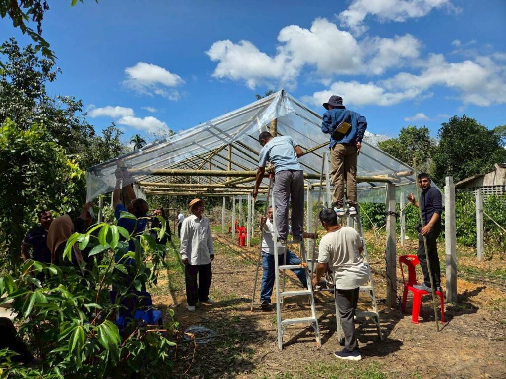 เมื่อวันที่ 22-23 ธันวาคม 2568 สถาบันการจัดการเทคโนโลยีและนวัตกรรมเกษตร (สท.) สวทช. จัดกิจกรรมถ่ายทอดองค์ความรู้และเทคโนโลยีเรื่อง “ปัจจัยสำคัญที่ผลต่อการเจริญเติบโตของพืช การบริหารจัดการผลิตผักและโรงเรือนปลูกพืชต้นทุนต่ำ” ณ หน่วยปฏิบัติการวิจัยร่วมทางธรรมชาติวิทยาป่าพรุและป่าดิบชื้นฮาลา-บาลา ตำบลโละจูด และศูนย์เรียนรู้เกษตรผสมผสานและท่องเที่ยวเชิงเกษตรบ้านน้ำขาว ตำบลกายูคละ อำเภอแว้ง จังหวัดนราธิวาส ให้เกษตรกรจากโรงเรียนเกษตรกรปลอดภัยปลูกพริก ตำบลโละจูด ศูนย์เรียนรู้เกษตรผสมผสานและท่องเที่ยวเชิงเกษตรบ้านน้ำขาว ตำบลกายูคละ และกลุ่มเกษตรกร FANADA บ้านเจ๊ะเด็ง ตำบลโละจูด อำเภอแว้ง จังหวัดนราธิวาส รวม 40 คน โดยมีน.ส.เลอทีชา เมืองมีศรี นักวิชาการ สท. และนายลิขิต มณีสินธุ์ นักปรับปรุงพันธุ์ ห้างหุ้นส่วนจำกัด ลัคกี้ซีดส์อโกร เป็นวิทยากร พร้อมทั้งนำเกษตรกรฝึกปฏิบัติการติดตั้งพลาสติกคลุมหลังคาโรงเรือนเกษตรกรผู้เข้าร่วมกิจกรรมได้รับความรู้และเข้าใจถึงปัจจัยที่มีผลต่อการเจริญเติบโตของพืช ตระหนักและเห็นความสำคัญของความเสี่ยงในการผลิตพืชผัก และรู้จักการป้องกันความเสี่ยงที่จะเกิดขึ้น อีกทั้งเกษตรกรได้เรียนรู้และรู้จักการใช้โรงเรือนปลูกพืชให้ได้ประสิทธิภาพเพื่อเพิ่มขีดความสามารถการผลิต และเป็นทางเลือกให้เกษตรกรได้นำไปใช้ประโยชน์ในการผลิตพืชผัก พริก และปทุมมาต่อไป สท. เติมความรู้สร้างความเข้าใจ “การผลิตพืชผักและโรงเรือนปลูกพืชต้นทุนต่ำ” ให้เกษตรกรนราธิวาส Post Views: 2 Tagged on: โรงเรือนปลูกพืชต้นทุนต่ำ