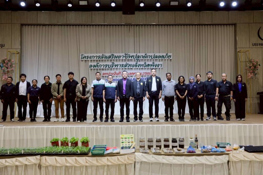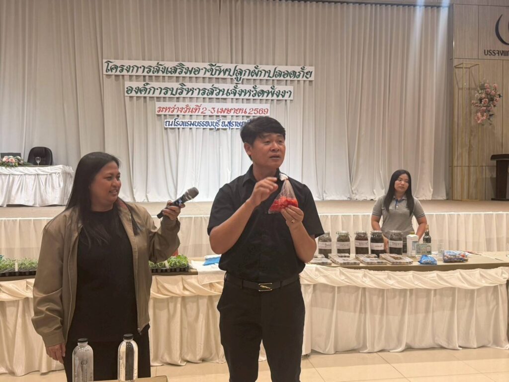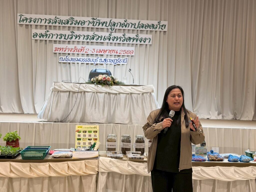 เมื่อวันที่ 2 เมษายน 2569 สถาบันการจัดการเทคโนโลยีและนวัตกรรมเกษตร (สท.) สวทช. และมหาวิทยาลัยแม่โจ้ ภายใต้ความร่วมมือสถานีเรียนรู้เทคโนโลยีและนวัตกรรม (Training Hub) ร่วมถ่ายทอดความรู้ “การผลิตผักปลอดภัย” ในกิจกรรม “โครงการส่งเสริมอาชีพปลูกผักปลอดภัยองค์การบริหารส่วนจังหวัดพังงา” ณ โรงแรมบรรจงบุรี จังหวัดสุราษฎร์ธานี โดยมี ดร.เทิดศักดิ์ โทณลักษณ์ ดร.สุเทพ วัชรเวชศฤงคาร มหาวิทยาลัยแม่โจ้ และ น.ส.ณิฎฐา คุ้มโต นักวิชาการอาวุโส สวทช. เป็นวิทยากรให้ความรู้แก่เกษตรกรผู้เข้าร่วมงาน 190 คน กิจกรรมครั้งนี้จัดโดยองค์การบริหารส่วนจังหวัดพังงาและสำนักงานเกษตรจังหวัดพังงา