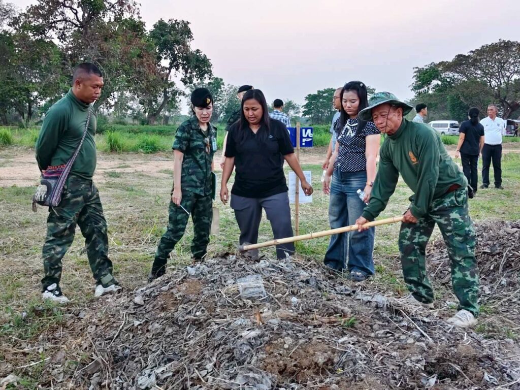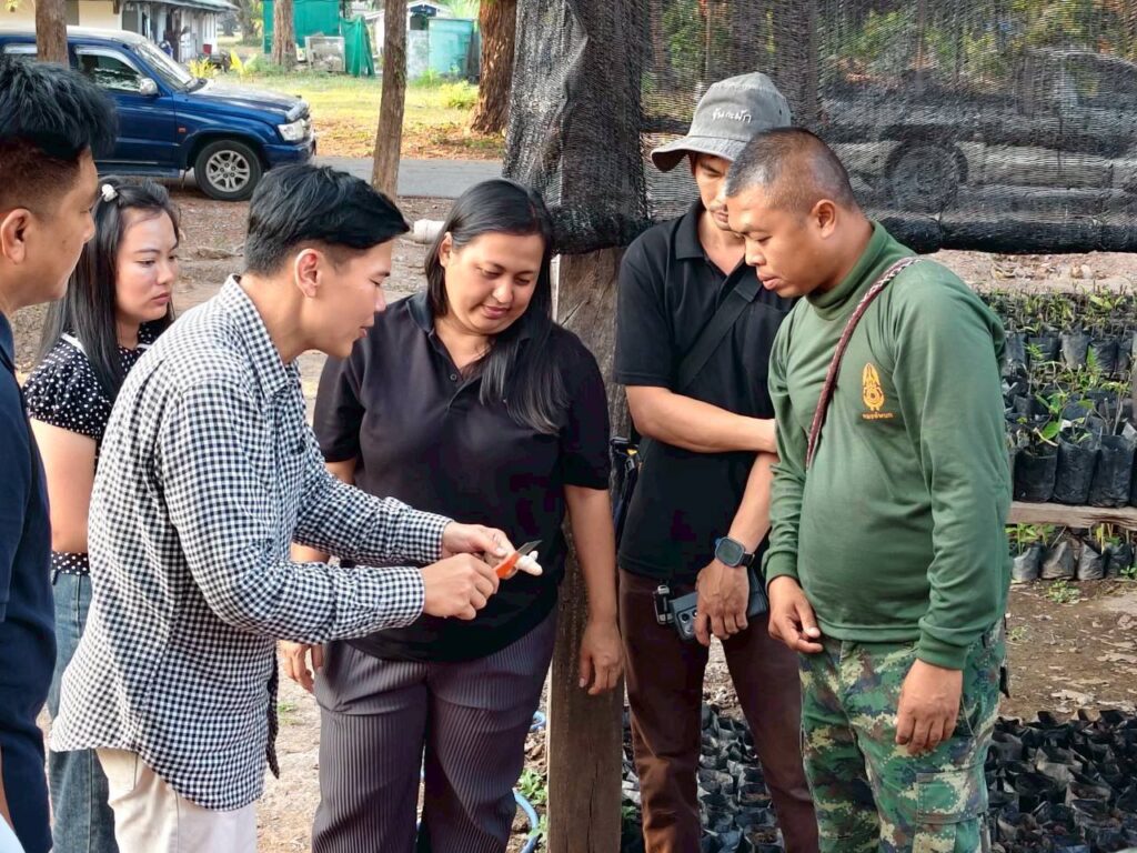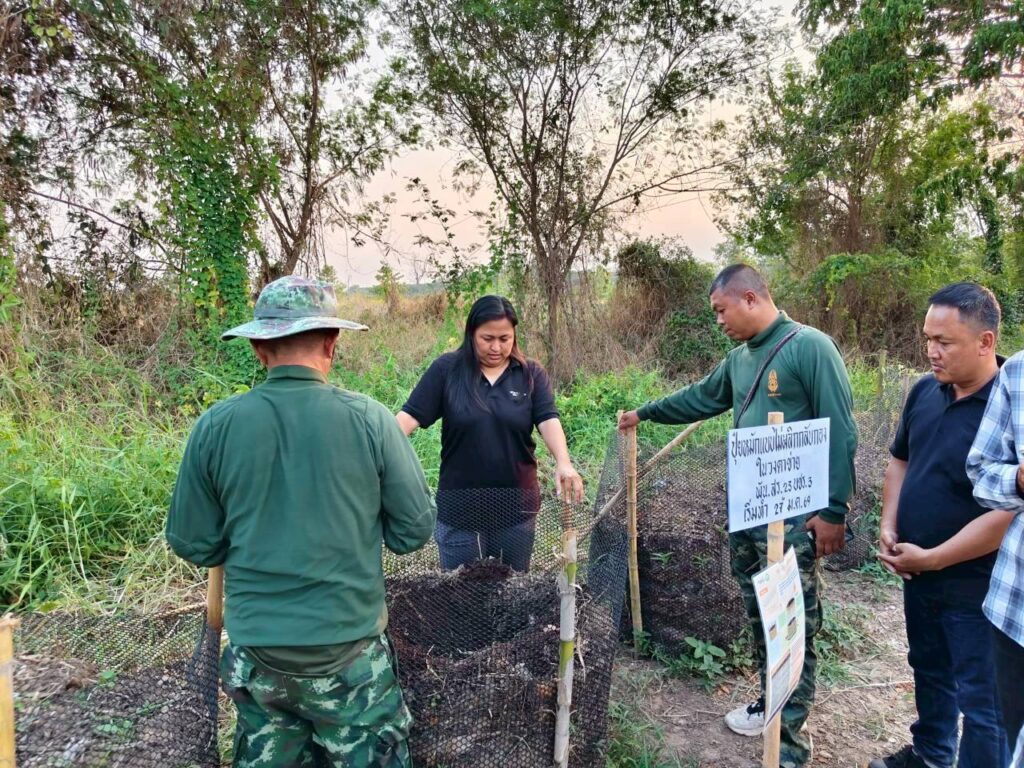 เมื่อวันที่ 27 มีนาคม 2569 น.ส.ณิฎฐา คุ้มโต นักวิชาการอาวุโส สถาบันการจัดการเทคโนโลยีและนวัตกรรมเกษตร (สท.) สวทช. และทีมงาน ลงพื้นที่ร่วมกับ ผศ.เทิดศักดิ์ โทณลักษณ์ คณะผลิตกรรมเกษตร มหาวิทยาลัยแม่โจ้ ให้คำแนะนำการอนุบาลต้นพันธุ์ขมิ้นชันเนื้อทองและติดตามการผลิตปุ๋ยหมักแบบไม่พลิกกลับกองเพื่อใช้ในแปลงปลูกขมิ้นชันอินทรีย์ ณ ค่ายสมเด็จพระเอกาทศรถ ตำบลบ้านคลอง อำเภอเมือง จังหวัดพิษณุโลก นอกจากนี้ได้ประชุมวางแผนขยายผลจัดตั้งศูนย์ผลิตชีวภัณฑ์โครงการทหารพันธุ์ดีค่ายสมเด็จพระเอกาทศรถ ร่วมกับพลเอกทรงวุฒิ จิตตานนท์ ผู้อำนวยการศูนย์ประสานงานโครงการทหารพันธุ์ดี มูลนิธิชัยพัฒนา ผศ.ฉันทนา วิชรัตน์ ผู้เชี่ยวชาญทางด้านพัฒนาพันธุ์พืช มูลนิธิชัยพัฒนา และนายณัฐพล เจริญสุข ผู้อำนวยการประสานงานโครงการมูลนิธิชัยพัฒนากิจกรรมครั้งนี้เป็นส่วนหนึ่งของโครงการ “การพัฒนาศูนย์เรียนรู้และฝึกอบรมด้านการผลิตพืชผักและสมุนไพรในระบบเกษตรอินทรีย์แบบครบวงจร ภายใต้ความร่วมมือระหว่าง สวทช. และมหาวิทยาลัยแม่โจ้ ระยะที่ 2 (Training Hub)” โดยได้ขยายการดำเนินงานร่วมกับมูลนิธิชัยพัฒนาเพื่อถ่ายทอดความรู้การผลิตพืชผัก ขมิ้นชันอินทรีย์ และการจัดตั้งศูนย์ผลิตชีวภัณฑ์โครงการทหารพันธุ์ดี สท.-ม.แม่โจ้ร่วมกับมูลนิธิชัยพัฒนา เติมความรู้ผลิตขมิ้นชันอินทรีย์ให้ทหารค่ายสมเด็จพระเอกาทศรถ พิษณุโลก Post Views: 23 Tagged on: Training ขมิ้นชันอินทรีย์ ค่ายสมเด็จพระเอกาทศรถ มหาวิทยาลัยแม่โจ้ มูลนิธิชัยพัฒนา สถานีเรียนรู้