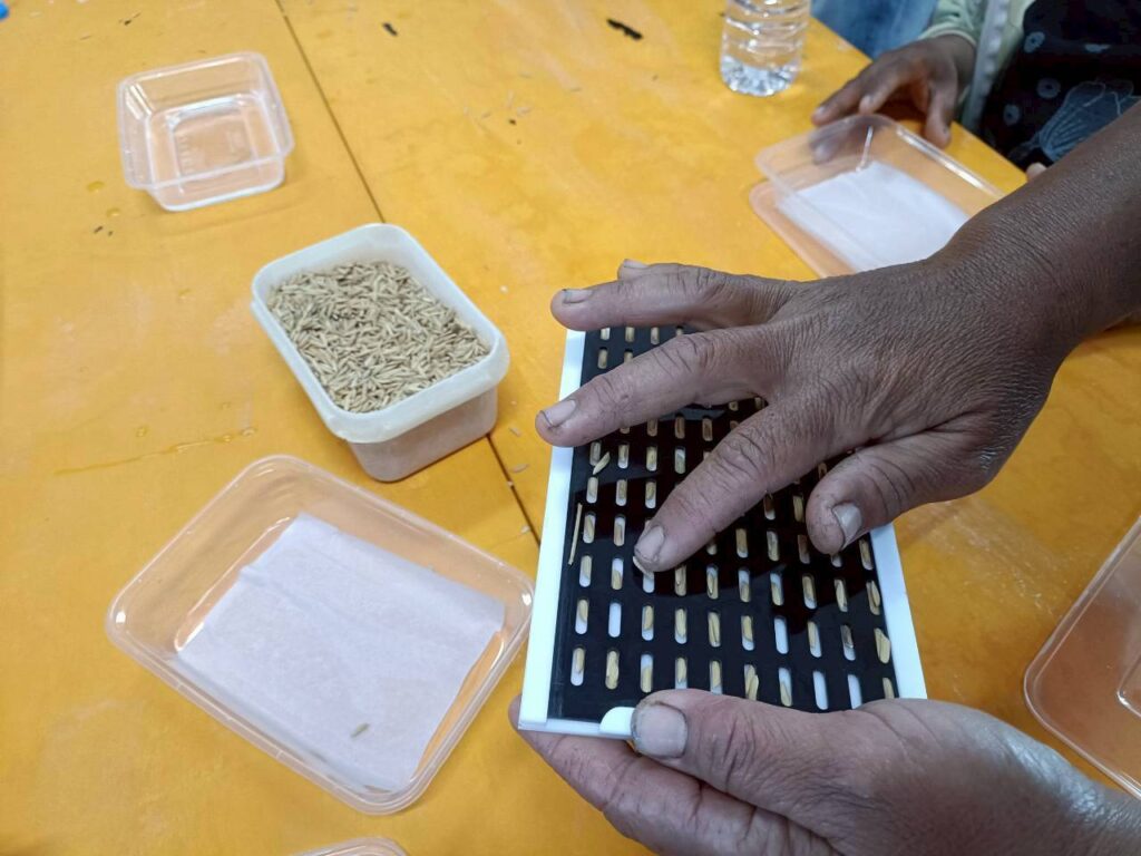 เมื่อวันที่ 27 มกราคม 2569 สถาบันการจัดการเทคโนโลยีและนวัตกรรมเกษตร (สท.) สวทช. ร่วมกับ ศูนย์วิจัยข้าวสุรินทร์ จัดกิจกรรมถ่ายทอดองค์ความรู้และเทคโนโลยี “การบริหารจัดการหลังการเก็บเกี่ยวเมล็ดพันธุ์ข้าวและการตรวจสอบคุณภาพเมล็ดพันธุ์ข้าว” ให้เกษตรกรแกนนำผู้ผลิตเมล็ดพันธุ์ข้าวในพื้นที่ทุ่งกุลาร้องไห้จังหวัดสุรินทร์และจังหวัดมหาสารคาม ณ ศูนย์วิจัยข้าวสุรินทร์ ต.แกใหญ่ อ.เมืองสุรินทร์ จ.สุรินทร์ โดยนายธานี ชื่นบาน ผู้อำนวยการศูนย์วิจัยข้าวสุรินทร์ ได้กล่าวต้อนรับเกษตรกรแกนนำทั้ง 50 รายที่เข้าร่วมกิจกรรมเรียนรู้และศึกษาดูงานกระบวนการจัดการหลังเก็บเกี่ยวเมล็ดพันธุ์ข้าว พร้อมทั้งฝึกปฏิบัติการตรวจสอบความงอกและตรวจสอบความบริสุทธิ์เมล็ดพันธุ์ที่ถูกต้องตามหลักวิชาการ เพื่อให้สามารถตรวจสอบคุณภาพเมล็ดพันธุ์ของตนเองได้เบื้องต้นการตรวจสอบความงอกของเมล็ดพันธุ์ข้าวต้องมีเปอร์เซ็นต์ความงอกไม่ต่ำกว่า 80% สำหรับการตรวจสอบความบริสุทธิ์ของเมล็ดพันธุ์เป็นการวิเคราะห์องค์ประกอบตัวอย่างเมล็ดพันธุ์ด้านกายภาพ 4 ด้าน ได้แก่ เมล็ดพันธุ์สุทธิ (เมล็ดข้าวที่มีเปลือกหุ้ม หรือเปลือกหุ้มหลุดออกแล้ว เมล็ดหักแตกที่มีขนาดใหญ่เกินครึ่งหนึ่ง และเมล็ดเป็นโรคที่ยังคงลักษณะเป็นเมล็ดข้าว ซึ่งเมล็ดพันธุ์สุทธิจะนำไปทดสอบความงอก) สิ่งเจือปน (เช่น เศษดิน หิน ชิ้นส่วนพืช ฯลฯ) เมล็ดอื่น (เช่น เมล็ดวัชพืช เมล็ดพืชชนิดอื่นๆ) และข้าวพันธุ์อื่นปน (จำนวนเมล็ดข้าวพันธุ์อื่นที่ไม่ใช่พันธุ์ที่ระบุในตัวอย่างที่ตรวจวิเคราะห์)กิจกรรมครั้งนี้ดำเนินงานภายใต้โครงการ “การยกระดับคุณภาพและมาตรฐานการผลิตข้าวด้วย วทน. ในพื้นที่ทุ่งกุลาร้องไห้” โดยมุ่งเน้นถ่ายทอดองค์ความรู้การผลิตเมล็ดพันธุ์ข้าวให้มีคุณภาพตามมาตรฐานการผลิตเมล็ดพันธุ์ (GAP Seed) มกษ.4406-2560 พัฒนาชุมชนต้นแบบด้วยแปลงสาธิตการผลิตเมล็ดพันธุ์ข้าวคุณภาพดี และยกระดับประสิทธิภาพการผลิตข้าวของเกษตรกรด้วยเทคโนโลยีข้าวสายพันธุ์ใหม่ สท.-ศูนย์วิจัยข้าวสุรินทร์ ยกระดับเกษตรกรแกนนำทุ่งกุลาร้องไห้ตรวจสอบคุณภาพเมล็ดพันธุ์ข้าวด้วยตนเอง Post Views: 16 Tagged on: ศูนย์วิจัยข้าวสุรินทร์ เมล็ดพันธุ์ข้าว