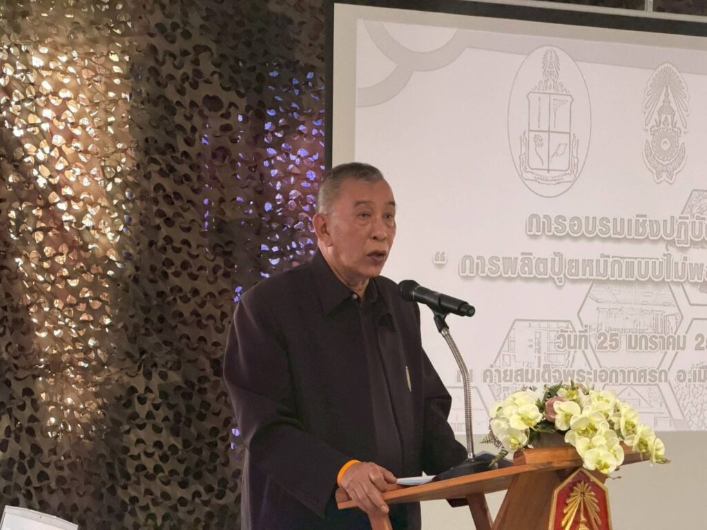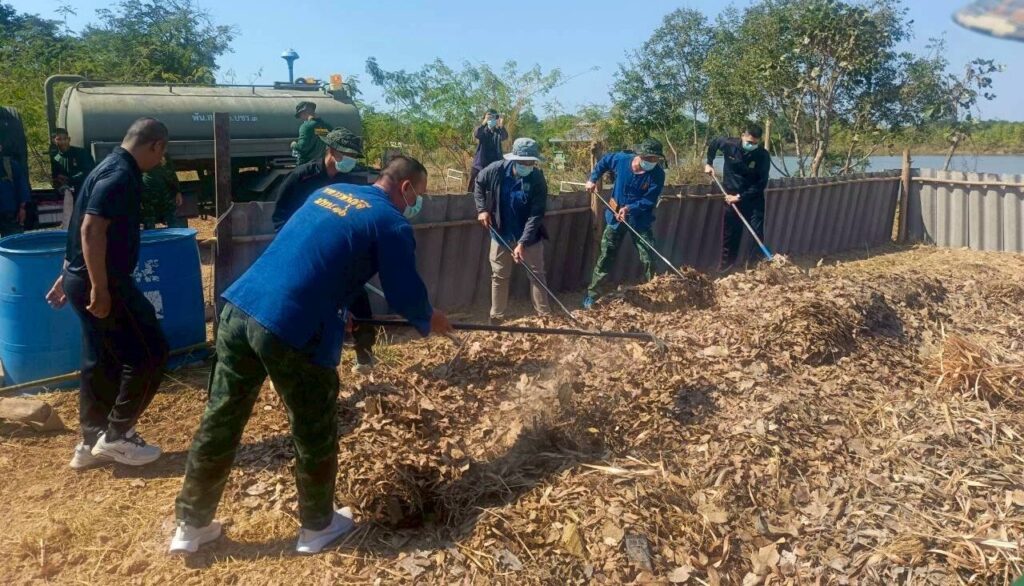 เมื่อวันที่ 25 มกราคม 2569 สถาบันการจัดการเทคโนโลยีและนวัตกรรมเกษตร (สท.) ภายใต้ความร่วมมือสถานีเรียนรู้ (Training Hub) สวทช. และมหาวิทยาลัยแม่โจ้ ร่วมกับมูลนิธิชัยพัฒนาและกองทัพบก จัดอบรมเชิงปฏิบัติการ “การผลิตปัจจัยการผลิตให้ได้คุณภาพและถูกต้องตามหลักวิชาการ การผลิตปุ๋ยหมักแบบไม่พลิกกลับกองและการวางแผนการใช้ในแปลงขมิ้นชันอินทรีย์” ให้เหล่าทหารโครงการทหารพันธุ์ดี ณ ค่ายสมเด็จพระเอกาทศรถ ต.อรัญญิก อ.เมือง จ.พิษณุโลก โดยได้รับเกียรติจากพลเอกทรงวุฒิ จิตตานนท์ ผู้อำนวยการศูนย์ประสานงานโครงการทหารพันธุ์ดี มูลนิธิชัยพัฒนา เป็นประธานเปิดการอบรม ซึ่งผู้เข้าร่วมอบรมได้รับความรู้จาก ผศ.ฉันทนา วิชรัตน์ ผู้เชี่ยวชาญด้านพัฒนาพันธุ์พืช มูลนิธิชัยพัฒนา ดร.แสนวสันต์ ยอดคำ คณะวิศวกรรมและอุตสาหกรรมเกษตร และ ผศ.ดร.เทิดศักดิ์ โทณลักษณ์ คณะผลิตกรรมการเกษตร มหาวิทยาลัยแม่โจ้ พร้อมทั้งได้ฝึกปฏิบัติทำปุ๋ยหมักแบบไม่พลิกกองทั้งแบบกองสามเหลี่ยมและวงตาข่าย โดยปุ๋ยหมักที่ได้นี้จะนำไปใช้แปลงขมิ้นชันอินทรีย์ภายในค่ายฯ ต่อไปทั้งนี้ สวทช. มีความร่วมมือกับมูลนิธิชัยพัฒนาและกองทัพบก ถ่ายทอดองค์ความรู้และเทคโนโลยีการผลิตพืชผักและสมุนไพรในระบบเกษตรอินทรีย์ การผลิตและการใช้เทคโนโลยีชีวภัณฑ์ รวมถึงการจัดตั้งศูนย์ชีวภัณฑ์โครงการทหารพันธุ์ดี ซึ่งค่ายสมเด็จพระเอกาทศรถได้รับการประเมินสถานที่และความพร้อมเพื่อจัดตั้งเป็นศูนย์ชีวภัณฑ์ฯ อีกหนึ่งแห่ง นอกเหนือจากที่กองพลทหาราบที่ 7 จ.เชียงใหม่ มณฑลทหารบกที่ 24 ค่ายประจักษ์ศิลปาคม จ.อุดรธานี และศูนย์การทหารปืนใหญ่ ค่ายภูมิพล จ.ลพบุรี สท.-ม.แม่โจ้ ร่วมกับมูลนิธิชัยพัฒนา-กองทัพบก เติมความรู้เตรียมพร้อมทหารพันธุ์ดีผลิตปุ๋ยหมักคุณภาพใช้ในแปลงขมิ้นชันอินทรีย์ Post Views: 2 Tagged on: ขมิ้นชันอินทรีย์ ค่ายสมเด็จพระเอกาทศรถ ทหารพันธุ์ดี ปุ๋ยหมักแบบไม่พลิกกลับกอง