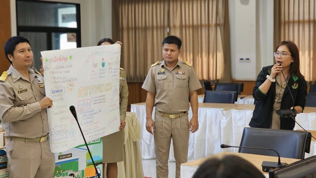 เมื่อวันที่ 27 สิงหาคม 2567 สถาบันการจัดการเทคโนโลยีและนวัตกรรมเกษตร (สท.) สวทช. ร่วมกับมหาวิทยาลัยเกษตรศาสตร์ วิทยาเขตกำแพงแสน และกรมส่งเสริมการเกษตร จัดอบรมเชิงปฏิบัติการหลักสูตร Train The Trainer เทคโนโลยีการผลิตพืชหลังนาแบบครบวงจร: ถั่วเขียวพันธุ์ KUML ให้เจ้าหน้าที่กรมส่งเสริมการเกษตรจาก 9 อำเภอในจังหวัดเพชรบูรณ์ เพื่อพัฒนาบุคลากรให้มีองค์ความรู้ด้านการผลิตถั่วเขียวและสามารถถ่ายทอดความรู้ที่ถูกต้องตามหลักวิชาการให้เกษตรกรได้ โดยมี รศ.ดร.ประกิจ สมท่า และ ผศ.ดร.กนกวรรณ เที่ยงธรรม มหาวิทยาลัยเกษตรศาสตร์ วิทยาเขตกำแพงแสน เป็นวิทยากรให้ความรู้ผ่านการทำกิจกรรมต่างๆ ที่ช่วยเสริมสร้างทักษะและความรู้ให้เจ้าหน้าที่สามารถนำไปประยุกต์ใช้ได้กิจกรรมครั้งนี้ได้รับเกียรติจากนางพัชรี ศาลาศิลป์ รองผู้ว่าราชการจังหวัดเพชรบูรณ์ เป็นประธานเปิดงาน โดยมีนางชญากุล ผ่องโอภาส เกษตรจังหวัดเพชรบูรณ์ และนางวีณา รังสิกรรพุม บริษัท พุเตยวัฒนาเกษตรภัณฑ์ จำกัด ตลาดรับซื้อถั่วเขียวรายใหญ่ของประเทศ เข้าร่วมกิจกรรมและแลกเปลี่ยนข้อมูลกับเจ้าหน้าที่เกษตรทั้ง 9 อำเภอการจัดอบรมเชิงปฏิบัติการครั้งนี้เป็นส่วนหนึ่งของการดำเนินงานโครงการ “การขยายผลเทคโนโลยีการผลิตถั่วเขียวคุณภาพสายพันธุ์ KUML ด้วยกลไกตลาดนำการผลิตปี 2” ภายใต้การสนับสนุนจากสำนักงานพัฒนาการวิจัยการเกษตร (องค์การมหาชน)# # # สท.-ม.เกษตรศาสตร์-กรมส่งเสริมการเกษตร จัดเต็มความรู้ถั่วเขียว KUML ให้เจ้าหน้าที่เพชรบูรณ์ ขยายผลเป็นพี่เลี้ยงให้เกษตรกร Post Views: 667 Tagged on: Train the trainer ถั่วเขียว KUML เพชรบูรณ์