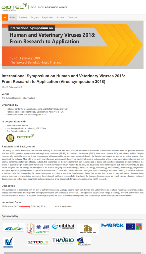Timeline จดหมายเหตุ สวทช. 12/02/2018เว็บไซต์ International Symposium on Human and Veterinary Viruses 2018: From Research to Application08/02/2018นักวิจัยเอ็มเทค รับเหรียญรางวัล RONPAKU จาก Japan Society for the Promotion of Science (JSPS)07/02/2018นักวิจัยนาโนเทค สวทช. เข้ารับพระราชทานโล่รางวัลสมาคมเคมีแห่งประเทศไทย ประจำปี 2560 จากศาสตราจารย์ ดร. สมเด็จพระเจ้าลูกเธอ เจ้าฟ้าจุฬาภรณวลัยลักษณ์ อัครราชกุมารี02/02/2018นักวิจัยนาโนเทค คว้ารางวัลระดับดี สาขาวิทยาศาสตร์การแพทย์ ในงานวันนักประดิษฐ์ ประจำปี 2561 (Thailand Inventors’ Day 2018)02/02/2018นักวิจัยเนคเทค คว้ารางวัลสภาวิจัยแห่งชาติ ประจำปี 2560 ระดีบดีเด่น และ ระดับดีมาก02/02/2018นักวิจัยไบโอเทคคว้ารางวัลสภาวิจัยแห่งชาติ ประจำปี 2560-6102/02/2018ผลงานสิ่งประดิษฐ์ นักเรียนทุน สวทช. คว้ารางวัลประดิษฐ์คิดค้น สาขาสิ่งประดิษฐ์เพื่อพลังงาน ทรัพยากร และสิ่งแวดล้อม ในงานวันนักประดิษฐ์ ปี 256101/02/2018รายงานประจำปี 2561 สำนักงานพัฒนาวิทยาศาสตร์และเทคโนโลยีแห่งชาติ01/02/2018NSTDA Style ฉบับกุมภาพันธ์ 256122/01/2018คู่มือบริหารความเสี่ยงของ สวทช. ปี 2561More