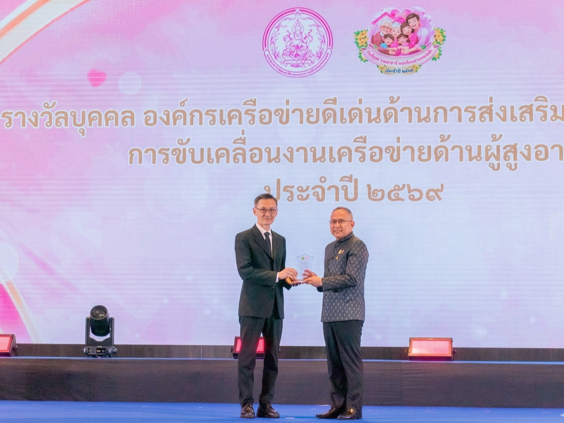 วันที่ 8 เมษายน 2569 กรมกิจการผู้สูงอายุได้จัดงานวันผู้สูงอายุแห่งชาติและวันครอบครัว ประจำปี 2569 ณ ห้องแกรนด์ ไดมอนด์ บอลรูม อาคารอิมแพ็ค ฟอรั่ม เมืองทองธานี จังหวัดนนทบุรี ภายในงานมีพิธีมอบ “รางวัลบุคคลและองค์กรเครือข่ายดีเด่นด้านการส่งเสริมและสนับสนุนการขับเคลื่อนงานเครือข่ายด้านผู้สูงอายุ ประจำปี 2569” โดยมีนายกันตพงศ์ รังษีสว่าง ปลัดกระทรวงการพัฒนาสังคมและความมั่นคงของมนุษย์ เป็นผู้มอบรางวัล
