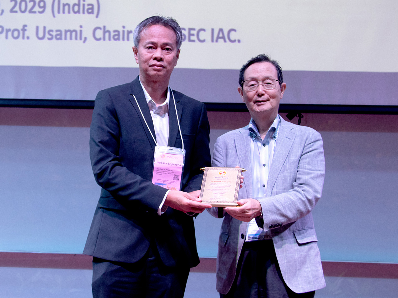 นักวิจัยสำนักงานพัฒนาวิทยาศาสตร์และเทคโนโลยีแห่งชาติ (สวทช.) รับรางวัลภายในงานการประชุมวิชาการนานาชาติด้านพลังงานแสงอาทิตย์ครั้งที่ 36 (The 36th International Photovoltaic Science and Engineering Conference: PVSEC-36)