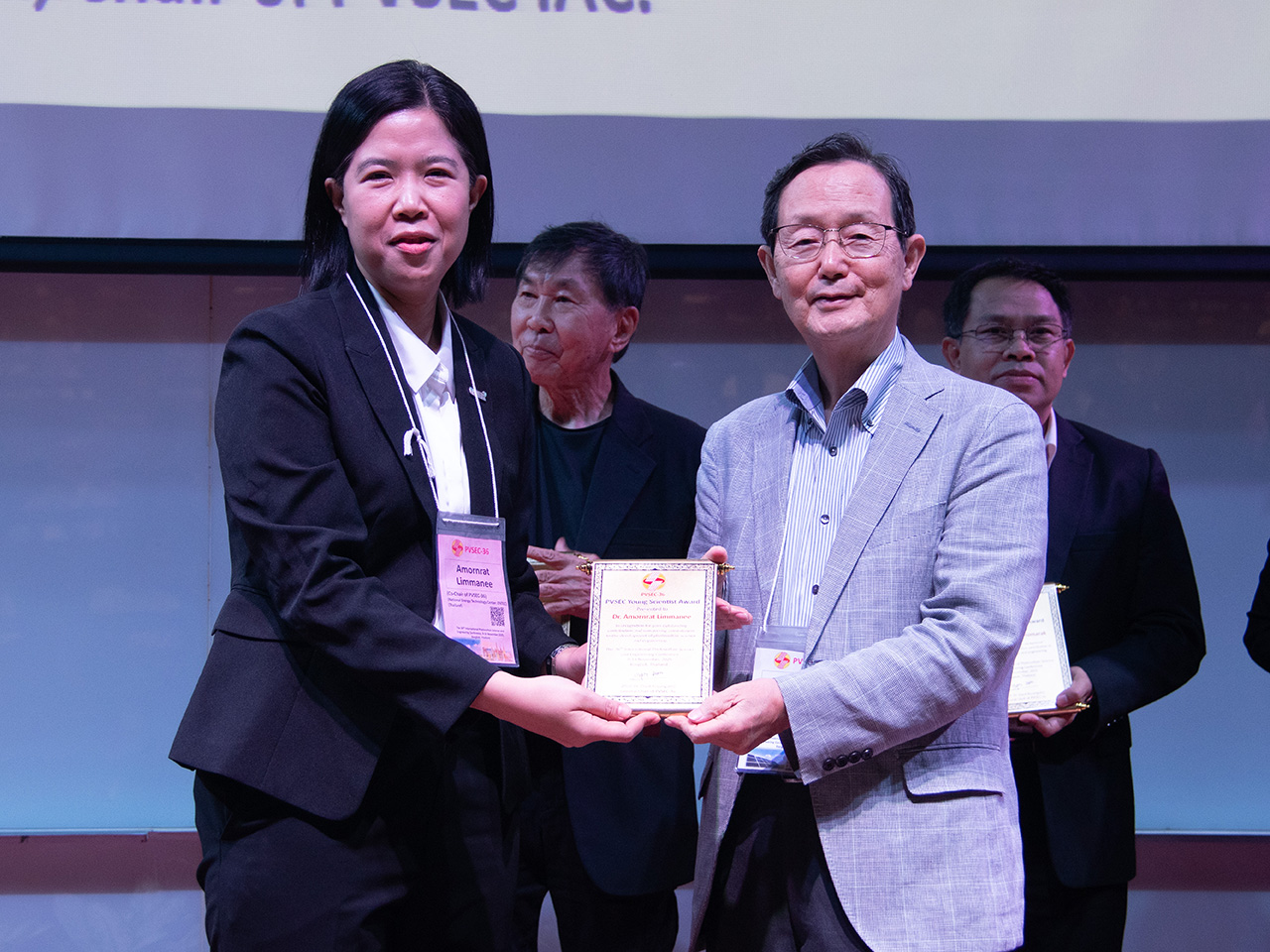 PVSEC Special Awards, รางวัล PVSEC Awards, รางวัล PVSEC Hamakawa Awards และ รางวัล PVSEC Young Scientist Awards ซึ่งได้รับเกียรติจาก ศาสตราจารย์มาโกโตะ โคนากาอิ ประธาน PVSEC IAC การประชุมวิชาการวิทยาศาสตร์และวิศวกรรมไฟฟ้าโซลาร์เซลล์นานาชาติ (PVSEC) เป็นผู้มอบรางวัลให้แก่ผู้ที่มีผลงานโดดเด่น