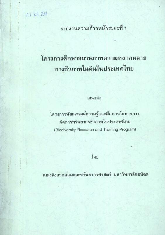 การศึกษาสถานภาพความหลากหลายชีวภาพในดินในประเทศไทย