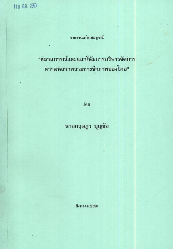 สถานการณ์และแนวโน้มการบริหารจัดการความหลากหลายทางชีวภาพ