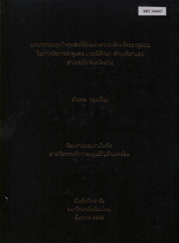 บทบาทของธุรกิจชุมชนที่มีผลต่อความเข้มแข็งของชุมชนในการจัดการป่าชุมชน : กรณีศึกษาตำบลศิลาแลง อำเภอปัว จังหวัดน่าน