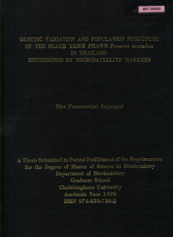 ความแปรผันทางพันธุกรรมและโครงสร้างประชากรของกุ้งกุลาดำ, Penaeus monodon ในประเทศไทย โดยตัวตรวจสอบชนิดไมโครแซทเทลไลต์