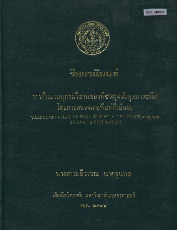 การศึกษาอนุกรมวิธานของพืชสกุลมังคุดบางชนิด โดยการตรวจลายพิมพ์ดีเอ็นเอ