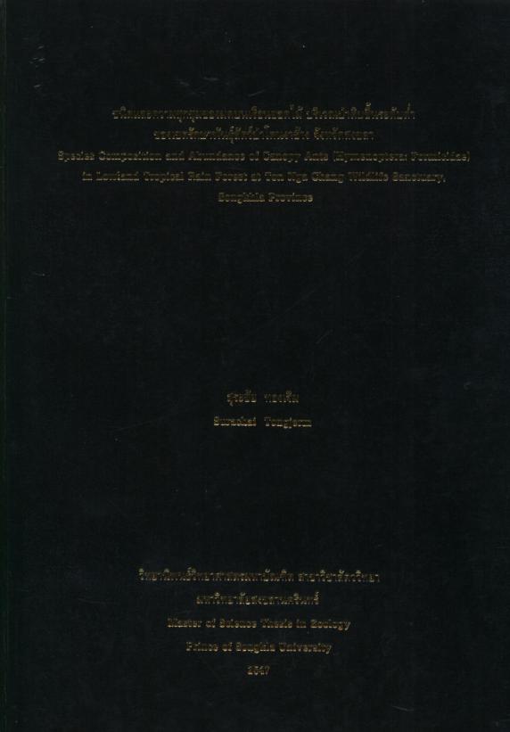 ชนิดและความชุกชุมของมดบนเรือนยอดไม้ บริเวณป่าดิบชื้นในพื้นที่ต่ำของเขตรักษาพันธุ์สัตว์ป่าโตนงาช้าง จ. สงขลา