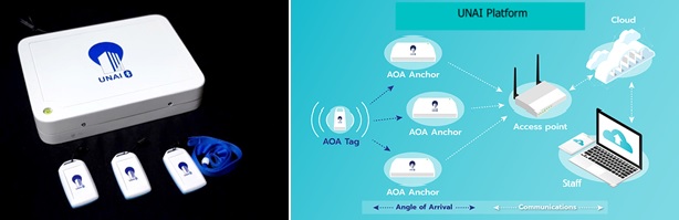 Such technology is called UNAI platform. Dr. La-Or Kovavisaruch, Leader of Location and Automatic Identification Systems Research Team explained that UNAI provides online location or moving direction data of an object or person within the building. The platform contains the signal receiving device “Anchor” and transmitting device “Tag” using the small embedded system and the Bluetooth Low Energy wireless communication system with Wi-Fi. The platform supports 3G/4G cellular network and 5G for data transmission to the server.
