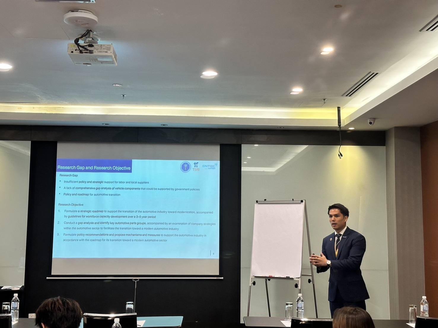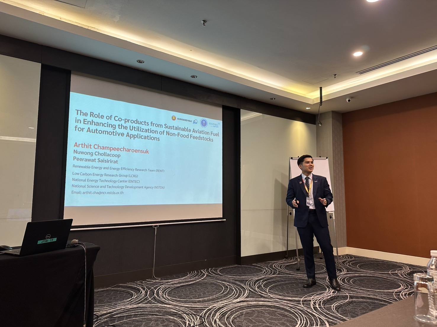 At the conference, Dr. Tawan Champeecharoensuk presented “The Transition of Thailand’s Automotive Industry Toward the Next-Generation Automotive,” while Dr. Arthit Champeecharoensuk delivered a presentation on “The Role of Co-products from Sustainable Aviation Fuel in Enhancing the Utilization of Non-Food Feedstocks for Automotive Applications.”