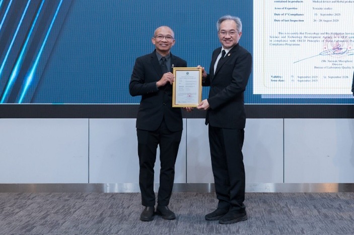 As a core facility under NSTDA, TBES plays a pivotal role in pre-clinical safety testing for health and medical products—including cosmetics, herbal products, medical devices, and household chemicals. The OECD GLP certification underscores Thailand’s growing scientific and technological capabilities to conduct globally recognized safety testing. It also strengthens confidence in the country’s safety assessment systems while enhancing economic competitiveness and the long-term sustainability of Thailand’s scientific and technological ecosystem.