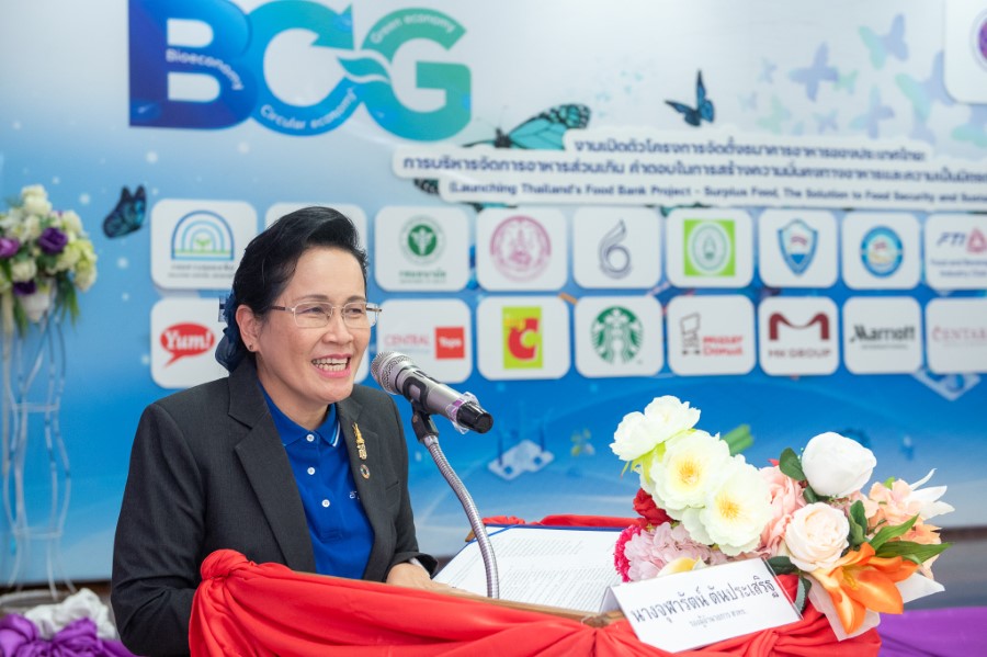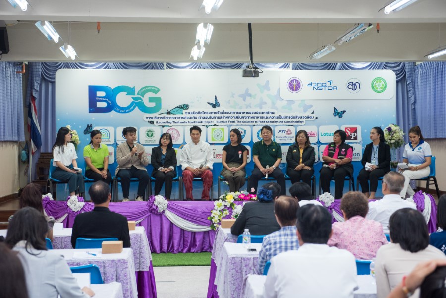 ดร.จุฬารัตน์ ตันประเสริฐ รองผู้อำนวยการสำนักงานพัฒนาวิทยาศาสตร์และเทคโนโลยีแห่งชาติ (สวทช.) กล่าวว่า ประเทศไทยกำลังเผชิญกับวิกฤตขยะอาหารที่ส่งผลกระทบร้ายแรงต่อสิ่งแวดล้อม และความมั่นคงทางอาหารของประชาชนกลุ่มเปราะบาง นอกเหนือจากการกำหนดแนวทางการแก้ปัญหาขยะอาหารแล้ว การลดการสูญเสียอาหารตั้งแต่ต้นทางก็เป็นอีกหนึ่งแนวทางสำคัญในการลดวิกฤตปัญหาขยะอาหาร จากข้อมูลที่ได้มีการศึกษาพบว่า ประเทศไทยมีอาหารส่วนเกินมากถึงเกือบ 4 ล้านตันต่อปี ในขณะที่มีการรายงานตัวเลขของประชากรของประเทศที่มีรายได้น้อยและมีแนวโน้มที่จะประสบปัญหาการเข้าถึงอาหารอยู่ถึง 3.8 ล้านคน สำนักงานพัฒนาวิทยาศาสตร์และเทคโนโลยีแห่งชาติ (สวทช.) ในฐานะเลขานุการคณะอนุกรรมการขับเคลื่อนการพัฒนาเศรษฐกิจ BCG สาขาอาหาร ร่วมกับ มูลนิธิสโกลารส์ ออฟ ซัสทีแนนซ์ (SOS) และหน่วยงานพันธมิตรทั้งภาครัฐ ภาคเอกชน และภาคประชาสังคม ดำเนินการศึกษาและวิจัยเชิงนโยบายเพื่อสร้างต้นแบบการดำเนินงานเพื่อบริหารจัดการอาหารส่วนเกิน (Food surplus) ของประเทศไทย ซึ่งได้รับการสนับสนุนงบประมาณจากสำนักงานพัฒนาการวิจัยการเกษตร (องค์การมหาชน) หรือ สวก. โดยการเปิดตัวธนาคารอาหารของประเทศไทยครั้งนี้ จัดขึ้นเพื่อสร้างความรู้ความเข้าใจเกี่ยวกับอาหารส่วนเกิน การกอบกู้อาหาร และการส่งต่ออาหารส่วนเกินอันจะช่วยส่งเสริมให้ลดการเกิดขยะอาหาร และสร้างความมั่นคงทางอาหารให้กับประเทศไปด้วยกัน และหวังเป็นต้นแบบของการสร้างแบบจำลองการส่งต่ออาหารส่วนเกินให้สังคมไทย