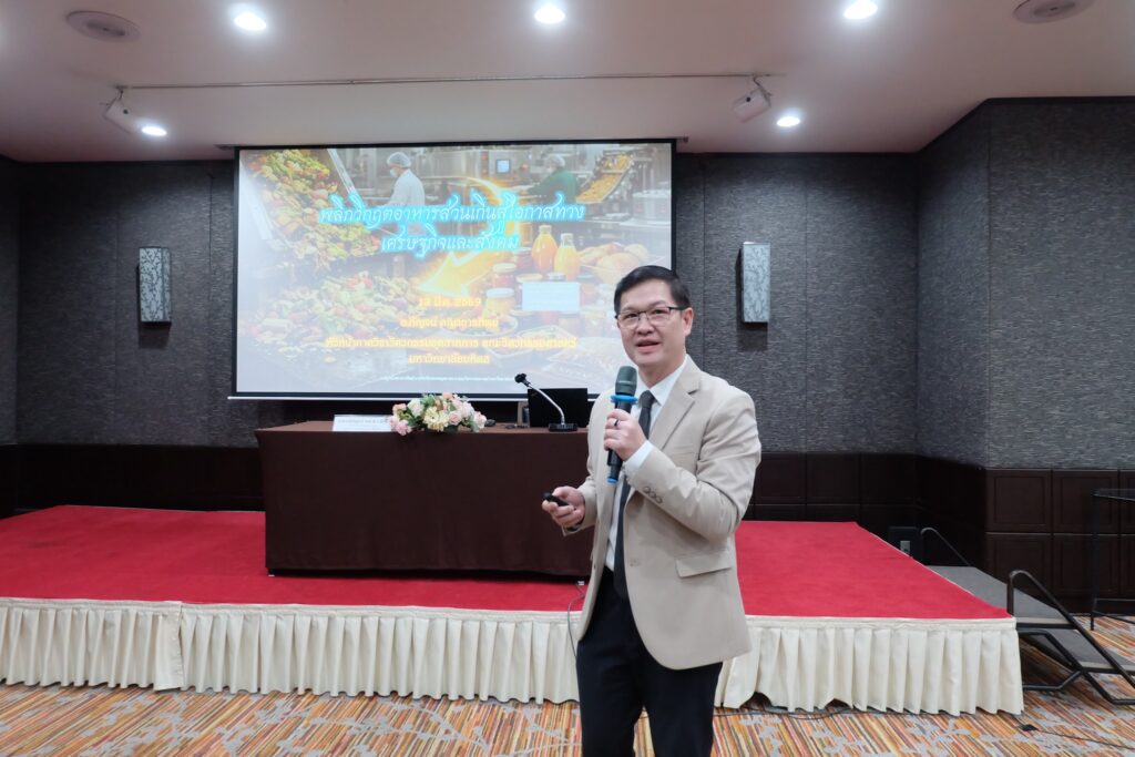 (วันที่ 13 มีนาคม 2569) ณ โรงแรมเซ็นจูรี่ พาร์ค กรุงเทพฯ : สำนักงานพัฒนาวิทยาศาสตร์และเทคโนโลยีแห่งชาติ (สวทช.) โดยฝ่ายโปรแกรมสนับสนุนการพัฒนาเทคโนโลยีและนวัตกรรม (ITAP) ร่วมกับ สถาบันค้นคว้าและพัฒนาผลิตภัณฑ์อาหาร มหาวิทยาลัยเกษตรศาสตร์ และภาควิชาวิศวกรรมอุตสาหการ คณะวิศวกรรมศาสตร์ มหาวิทยาลัยมหิดล จัดอบรมเชิงปฏิบัติการ “พลิกวิกฤตอาหารส่วนเกินสู่โอกาสทางเศรษฐกิจและสังคม” เพื่อลดการเกิดขยะอาหารและส่งต่ออาหารให้กับกลุ่มผู้ต้องการอาหาร
