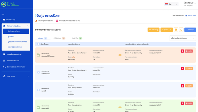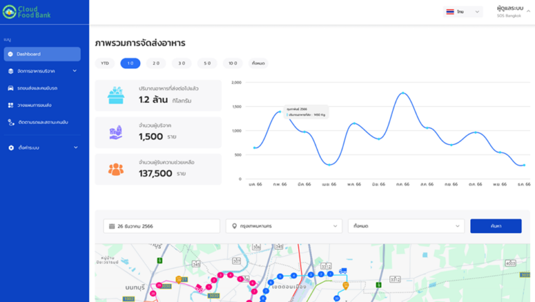 ดร.นันทพร รติสุนทร นักวิจัยทีมวิจัยการวิเคราะห์พฤติกรรมมนุษย์ กลุ่มวิจัยเทคโนโลยีสิ่งอำนวยความสะดวกและเครื่องมือแพทย์ เนคเทค สวทช. เล่าว่า ทีมวิจัยได้นำประสบการณ์ความเชี่ยวชาญเรื่องการออกแบบและพัฒนาแพลตฟอร์มดิจิทัลอัจฉริยะที่ได้จากการพัฒนาระบบ Thai School Lunch หรือระบบแนะนำสำรับอาหารกลางวันสำหรับโรงเรียนแบบอัตโนมัติที่เปิดให้บริการแก่สถานศึกษาทั่วประเทศไทย มาต่อยอดพัฒนาสู่แพลตฟอร์มจับคู่ความต้องการระหว่างผู้บริจาคกับผู้ขอรับบริจาคอาหารแบบอัตโนมัติ กลไกหลักคือเมื่อผู้บริจาค เช่น ซูเปอร์มาร์เก็ต ร้านอาหารขนาดใหญ่ ยื่นความประสงค์บริจาคอาหารผ่าน Cloud Food Bank หรือช่องทางรับบริจาคต่าง ๆ ของ SOS Thailand ระบบจะเชื่อมโยงข้อมูลที่เกี่ยวข้อง เช่น ประเภทอาหาร ปริมาณอาหาร ปริมาณความต้องการอาหาร (คำนวณจากจำนวนผู้ต้องการอาหารจากแต่ละชุมชน) รวมถึงข้อจำกัดด้านการขนส่งของ SOS Thailand โดยอัตโนมัติ จากนั้น AI จะวิเคราะห์และแนะนำตัวเลือกการจัดสรรอาหารบริจาค พร้อมตารางเส้นทางรับส่งอาหาร เพื่อให้เจ้าหน้าที่ตัดสินใจบริหารจัดการอาหารบริจาคแต่ละวันได้อย่างรวดเร็วและแม่นยำ