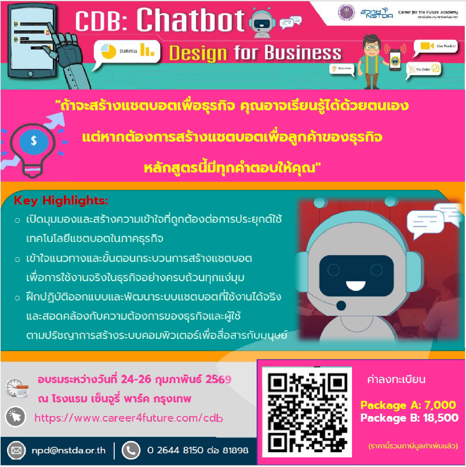 🔹 Package B (Developer): จัดเต็ม 3 วัน ลงลึกเทคนิคและการสร้างจริง (24-26 ก.พ. 69)