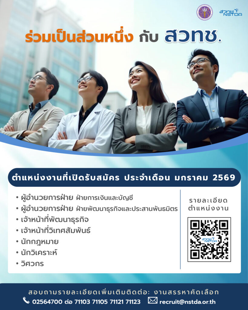 สวทช. เปิดรับสมัครพนักงาน ประจำเดือนมกราคม 2569