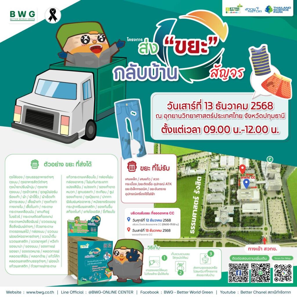 โครงการ “ส่งขยะกลับบ้าน” ร่วมกับ อุทยานวิทยาศาสตร์ประเทศไทย สวทช. โรงเรียนสาธิตธรรมศาสตร์ และบริษัท เบตเตอร์ เวิลด์ กรีน จำกัด (มหาชน)