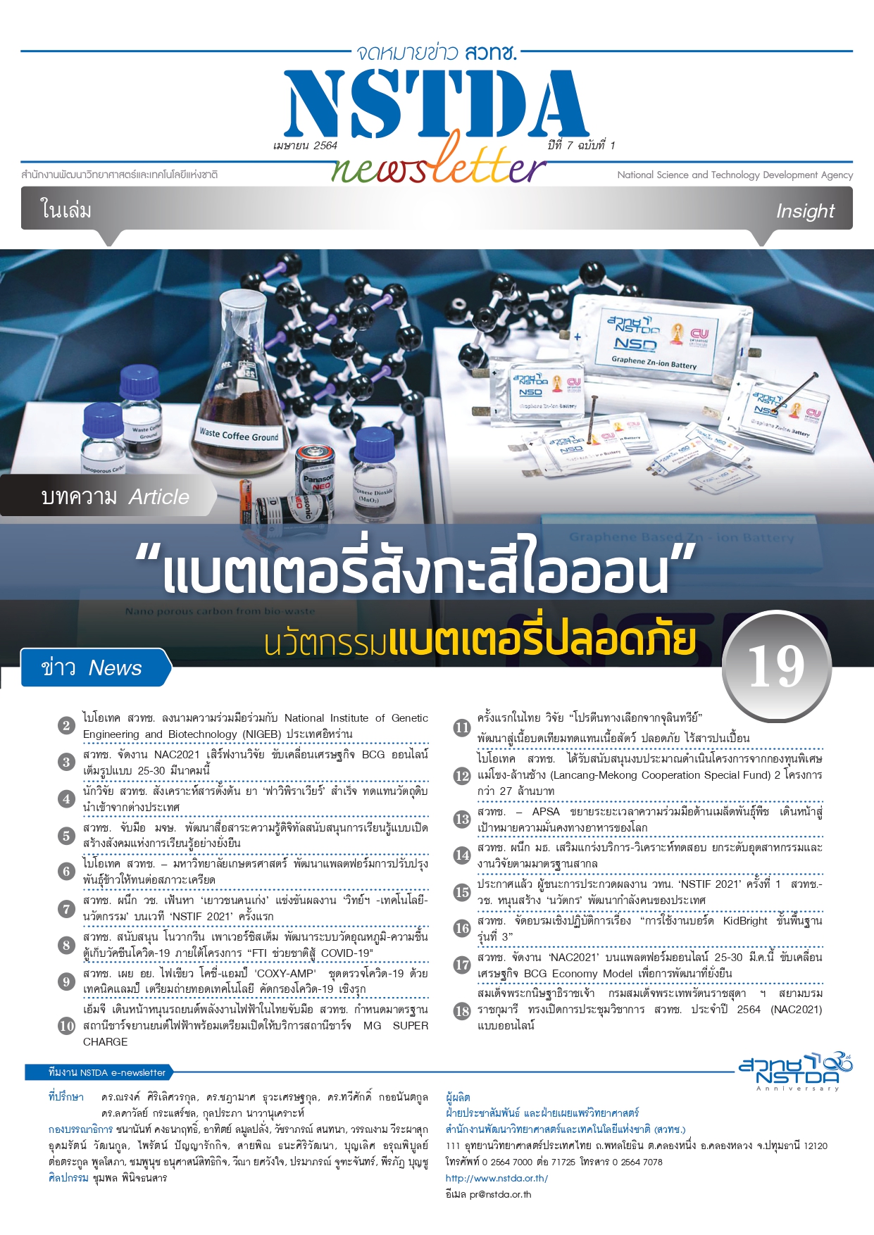 จดหมายข่าว สวทช. ปีที่ 7 ฉบับที่ 1 ประจำเดือนเมษายน 2564