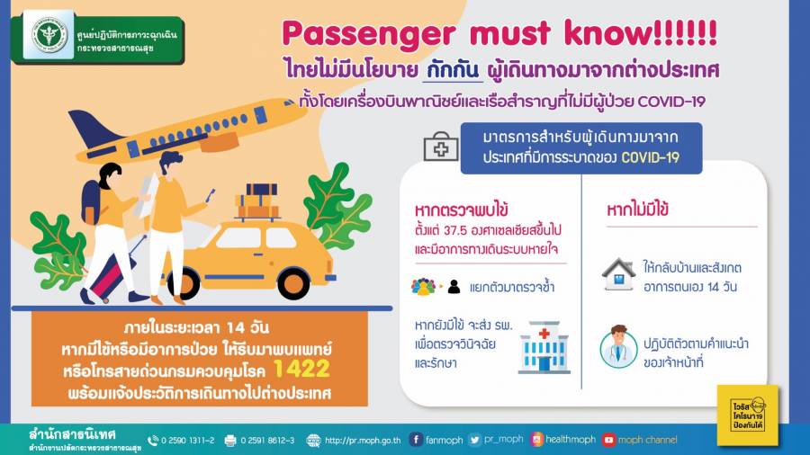 - หากท่านมีอาการไข้ ไอ เจ็บคอ มีน้ำมูก และเพิ่งกลับจากประเทศจีน ประเทศสิงคโปร์ ประเทศญี่ปุ่น ภายใน 14 วัน หรือสัมผัสผู้ป่วยต้องสงสัย กรุณาแจ้งเจ้าหน้าที่ทันที