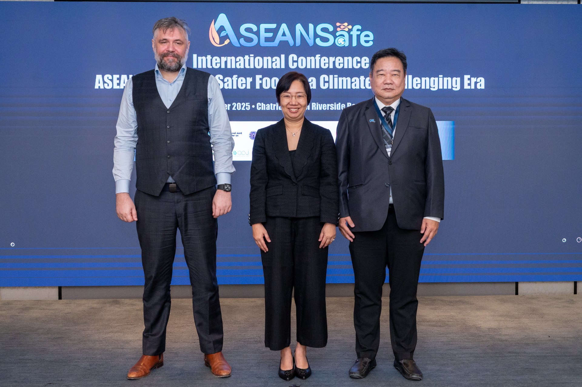 “ขอบคุณทีมผู้จัดงานทุกท่าน ประกอบด้วย สวทช., มหาวิทยาลัยธรรมศาสตร์, ศูนย์วิจัยนานาชาติด้านความมั่นคงอาหาร (IJC-FOODSEC), สหภาพยุโรป, บพค., มูลนิธิบัณฑิตยสภาวิทยาศาสตร์และเทคโนโลยีแห่งประเทศไทย (บวท.), และหน่วยงานที่เข้าร่วมทุกแห่ง สำหรับการทำงานอย่างทุ่มเทและความเป็นผู้นำในการขับเคลื่อนประเด็นความปลอดภัยอาหารในอาเซียนและในระดับสากล โดยเฉพาะอย่างยิ่งศูนย์ IJC-FOODSEC ซึ่งมีบทบาทสำคัญในการศึกษาความท้าทายด้านความปลอดภัยอาหาร โดยเฉพาะอย่างยิ่งในประเด็นไมโคท็อกซินที่ทวีความรุนแรงจากสภาพภูมิอากาศที่เปลี่ยนแปลง ผ่านความร่วมมือด้านการวิจัยและการแลกเปลี่ยนองค์ความรู้ ศูนย์ฯ มีบทบาทในการเชื่อมโยงงานวิทยาศาสตร์สู่การกำหนดนโยบาย เพื่อเสริมสร้างความปลอดภัยอาหารและความเข้มแข็งของระบบอาหารในภูมิภาคอย่างแท้จริง และหวังเป็นอย่างยิ่งว่าการการประชุมครั้งนี้จะนำไปสู่ความร่วมมือใหม่ ๆ และยกระดับความมุ่งมั่นร่วมกันในการสร้างความปลอดภัยอาหารเพื่อทุกคน ขอให้ ASEANSafe 2025 เป็นหมุดหมายสำคัญของการเสริมสร้างความร่วมมือและความปลอดภัยด้านอาหารของประชาชนในภูมิภาคของเราอย่างยั่งยืน”