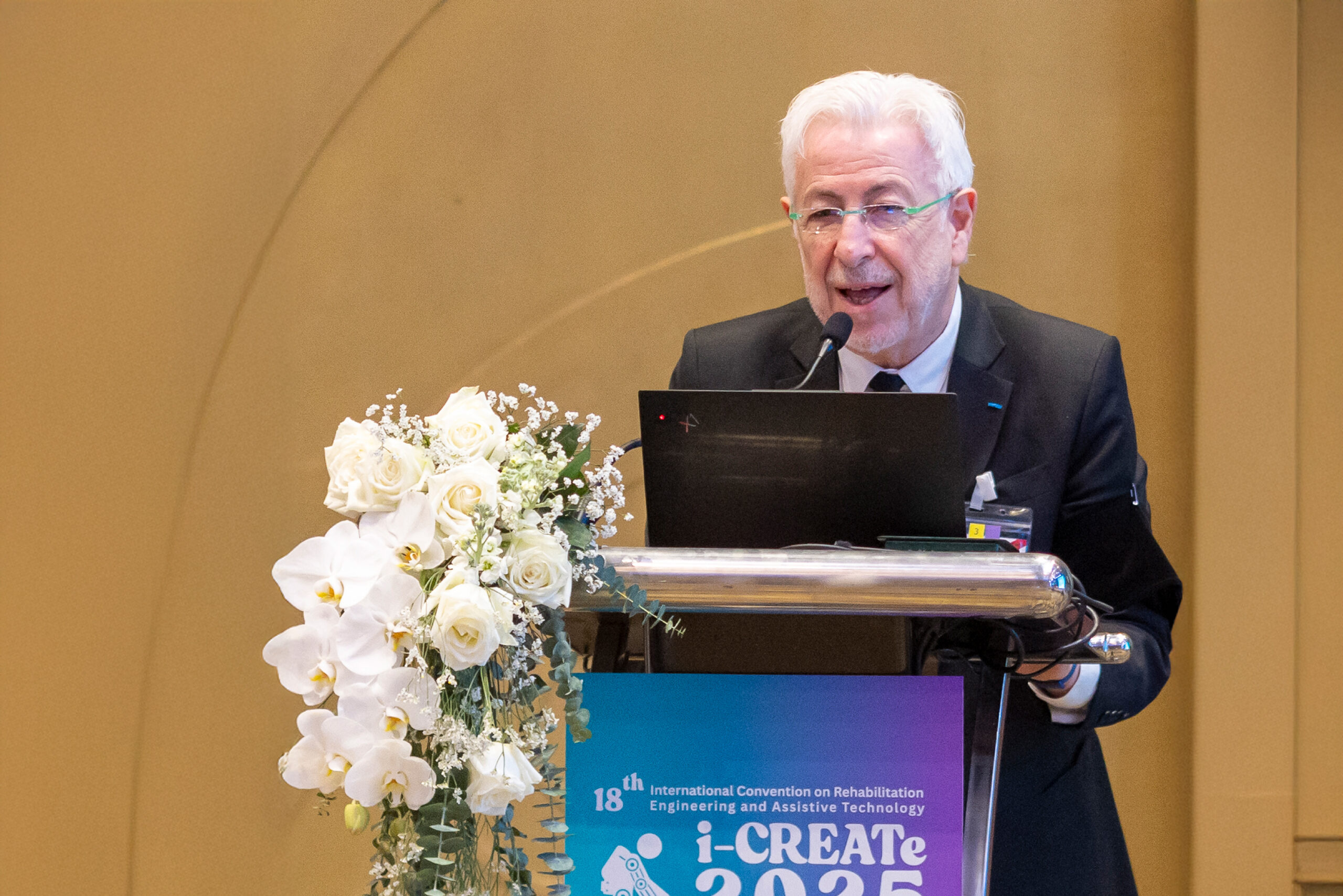 Prof.Hongliu Yu ว่าที่ประธานกลุ่มความร่วมมือวิศวกรรมฟื้นฟูสมรรถภาพและเทคโนโลยีสิ่งอำนวยความสะดวกแห่งเอเชีย และ General Co-Chair งานประชุมวิชาการนานาชาติ เรื่อง “วิศวกรรมฟื้นฟูสมรรถภาพและเทคโนโลยีสิ่งอำนวยความสะดวก ครั้งที่ 18 (i-CREATe 2025)” กล่าวว่า  “ตลอดระยะเวลากว่า 18 ปี i-CREATe ได้ทำหน้าที่เป็นศูนย์กลางความร่วมมือระดับโลกด้านเทคโนโลยีเพื่อผู้พิการ การประชุมในปีนี้จึงเป็นเวทีสำคัญที่ผู้นำทางวิชาการและภาคอุตสาหกรรมจะได้ร่วมกันสำรวจความก้าวหน้าอันล้ำสมัย ทั้งในด้านหุ่นยนต์ทางการแพทย์และวิศวกรรมชีวการแพทย์ โดยมุ่งเน้นการประยุกต์ใช้ AI และเทคโนโลยีอุปกรณ์สวมใส่ (AI Wearable Technology) เพื่อยกระดับคุณภาพชีวิต และส่งเสริมความร่วมมือระหว่างประเทศ ในการพัฒนาแนวทางแก้ไขปัญหาทางด้านเทคโนโลยีแบบองค์รวม”