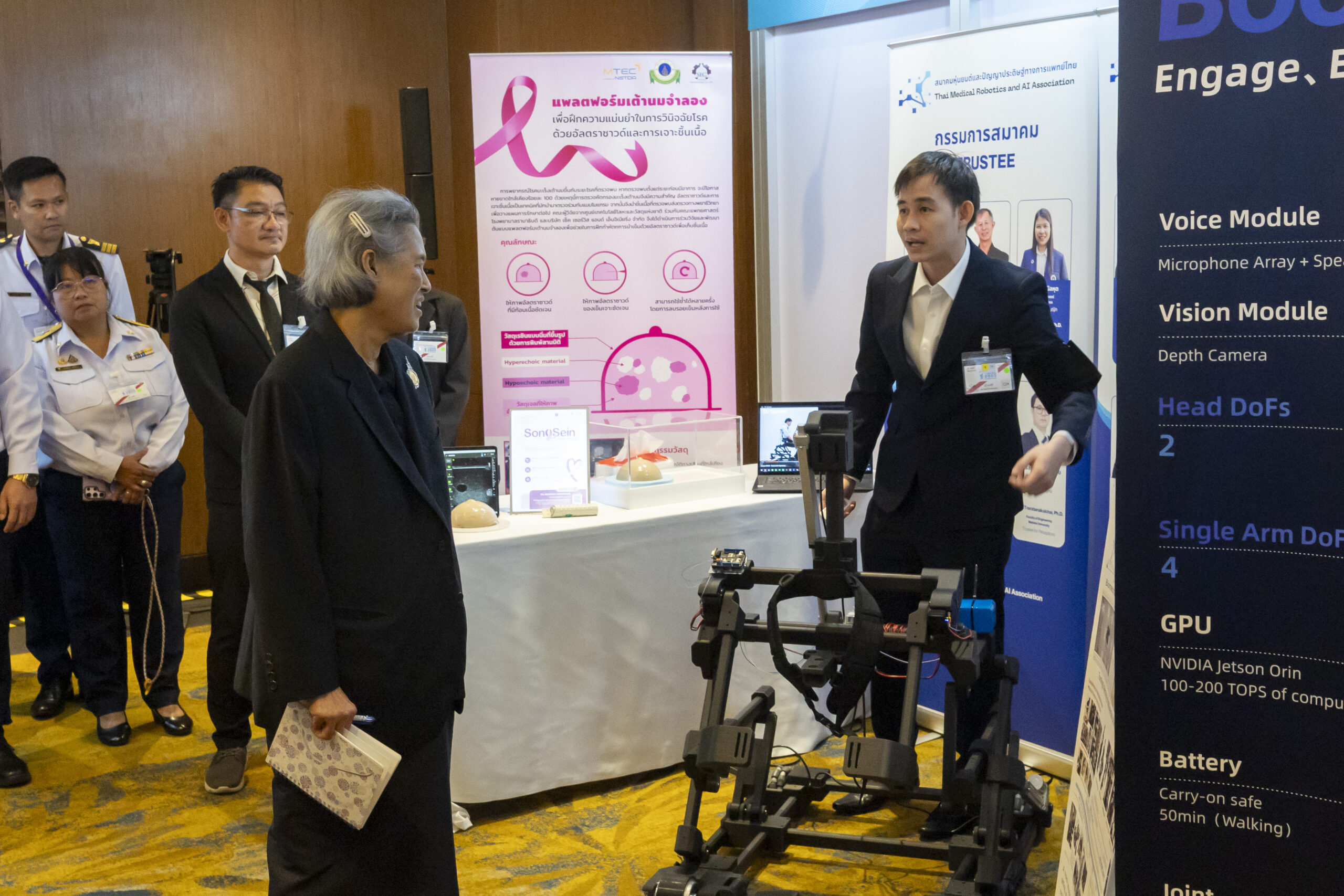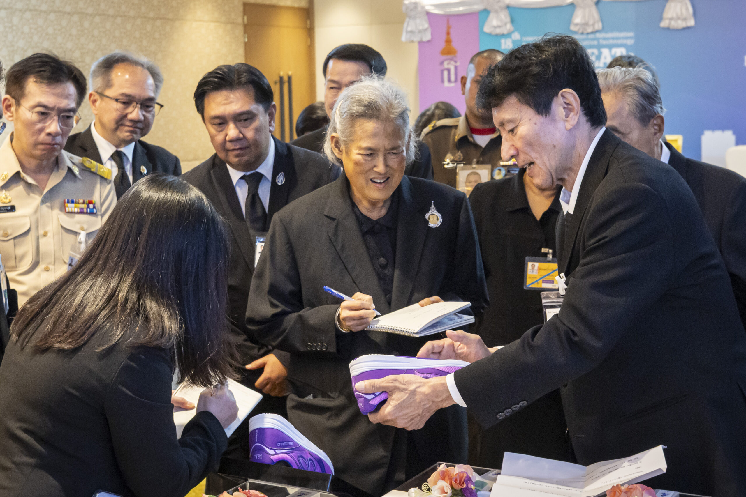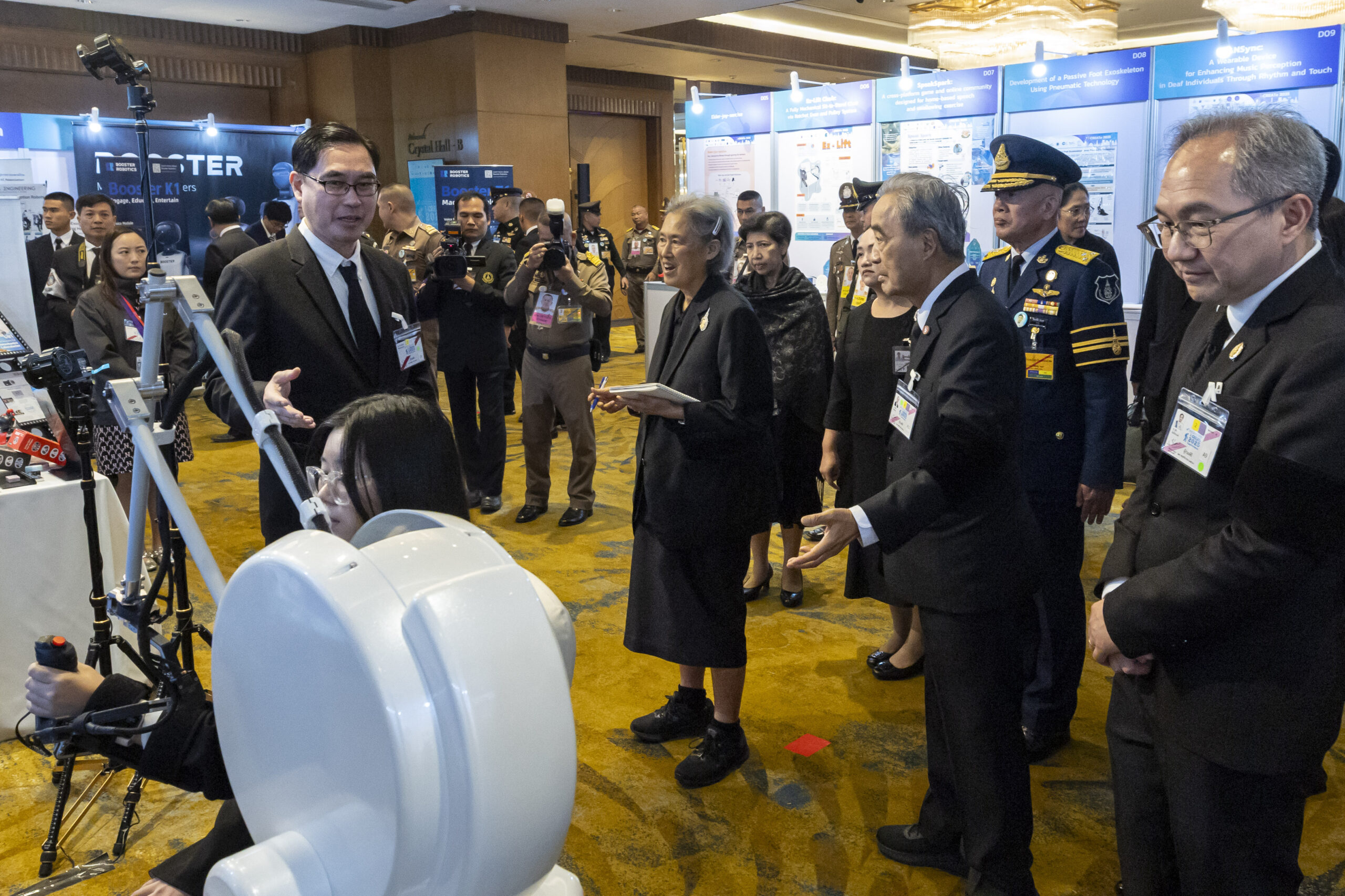 ศาสตราจารย์ ดร.ชูกิจ ลิมปิจำนงค์ ผู้อำนวยการ สวทช. กราบบังคมทูลเบิกผู้ชนะเลิศการประกวดสิ่งประดิษฐ์สำหรับคนพิการและผู้สูงอายุระดับนานาชาติ ด้านนวัตกรรมการออกแบบ ประจำปี 2568 จำนวน 11 ราย และผู้ชนะเลิศการประกวดสิ่งประดิษฐ์สำหรับคนพิการและผู้สูงอายุระดับนานาชาติ ด้านเทคโนโลยี ประจำปี 2568 จำนวน 18 ราย เข้ารับพระราชทานรางวัล