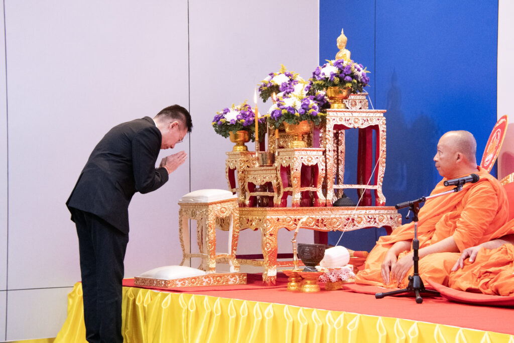 กิจกรรมภายในงานเริ่มขึ้นในช่วงเช้าด้วยพิธีถวายภัตตาหารเช้าแด่พระสงฆ์จากวัดอินทรวิหาร พระอารามหลวง แขวงบางขุนพรหม เขตพระนคร กรุงเทพฯ จำนวน 10 รูป ณ ศูนย์บริการร่วม อาคารพระจอมเกล้า ต่อมาปลัดกระทรวง อว. ได้จุดธูปเทียนบูชาพระรัตนตรัย พระสงฆ์เจริญพระพุทธมนต์เพื่อความเป็นสิริมงคลแก่หน่วยงานและบุคลากร จากนั้น รมว.อว. นำคณะผู้บริหารและเจ้าหน้าที่ร่วมกันทำบุญตักบาตรข้าวสารอาหารแห้งแด่พระสงฆ์ บริเวณหน้าอาคารพระจอมเกล้า