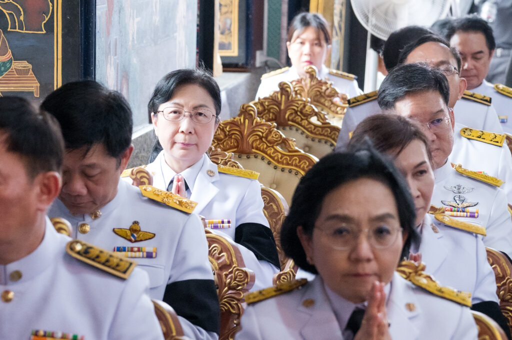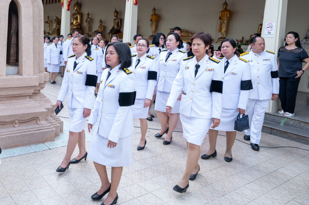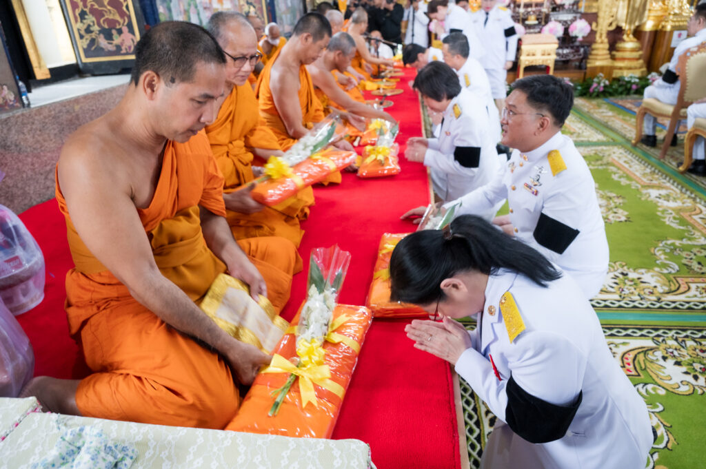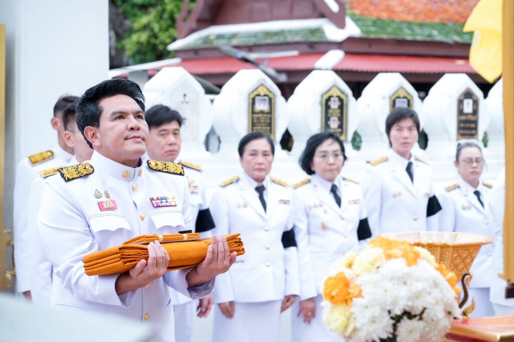 จากนั้น รมว.อว. จุดธูปเทียนบูชาพระรัตนตรัย กล่าวคำนมัสการและกล่าวคำถวายผ้าพระกฐิน พร้อมถวายเครื่องบริวารกฐิน โดยมีคณะผู้บริหาร หัวหน้าส่วนราชการ ร่วมถวายเครื่องไทยธรรมแด่พระสงฆ์ ต่อจากนั้น รมว.อว. ถวายจตุปัจจัยแด่ประธานพระสงฆ์ และกรวดน้ำ รับพร เสร็จแล้วกราบลาพระประธานและพระสงฆ์