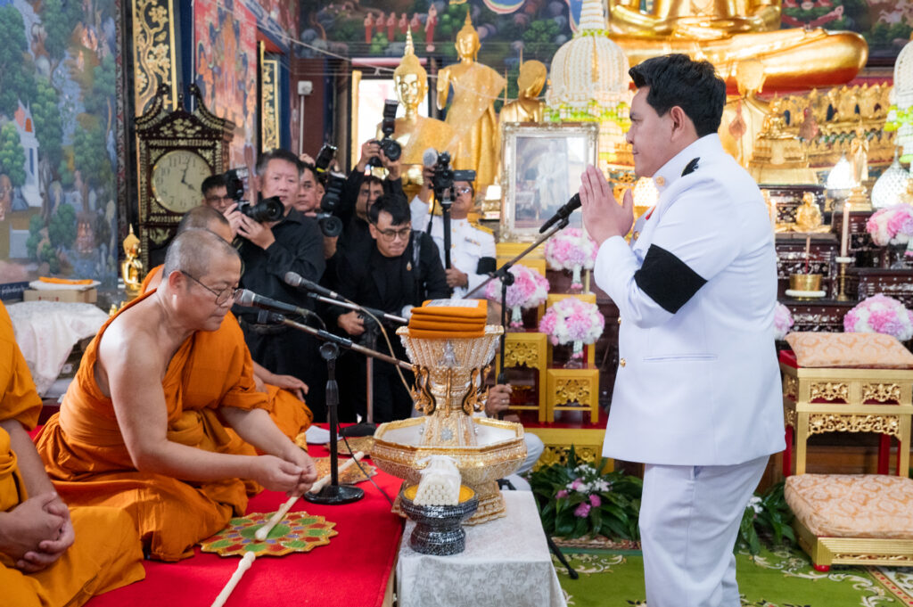 เมื่อเดินทางมาถึง นายสุรศักดิ์ ถวายความเคารพและถวายธูปเทียนแพ หน้าพระบรมฉายาลักษณ์พระบาทสมเด็จพระเจ้าอยู่หัว หลังจากนั้นหยิบผ้าพระกฐินพระราชทานจากพานเดินเข้าสู่พระอุโบสถ พร้อมวางผ้าพระกฐินบนพานแว่นฟ้า พระสงฆ์กระทำพิธีอุปโลกน์ และสวดญัตติทุติยกรรม พระสงฆ์รูปที่ได้รับฉันทานุมัติให้เป็นผู้ครองผ้าพระกฐินลงไปครองผ้า