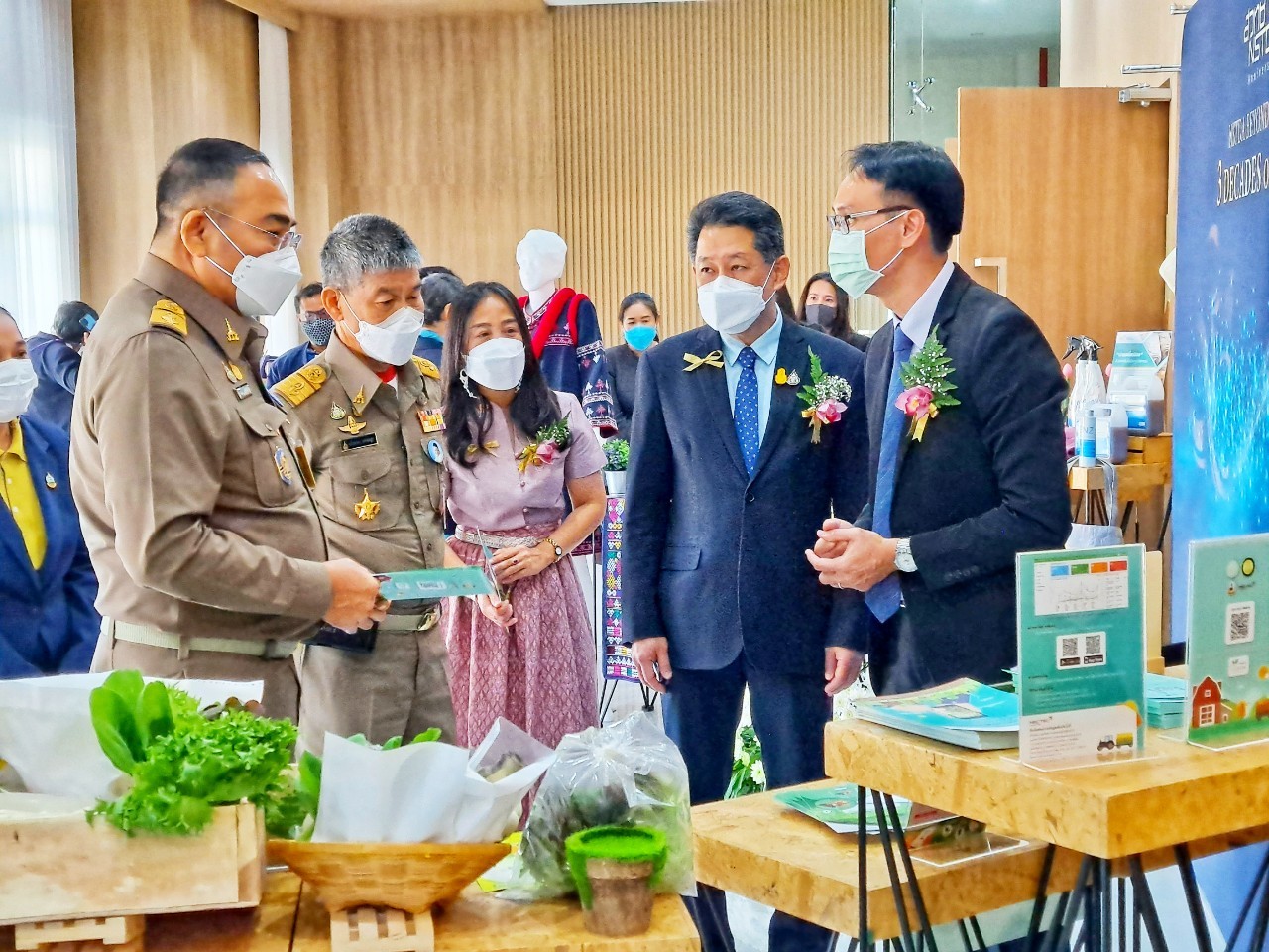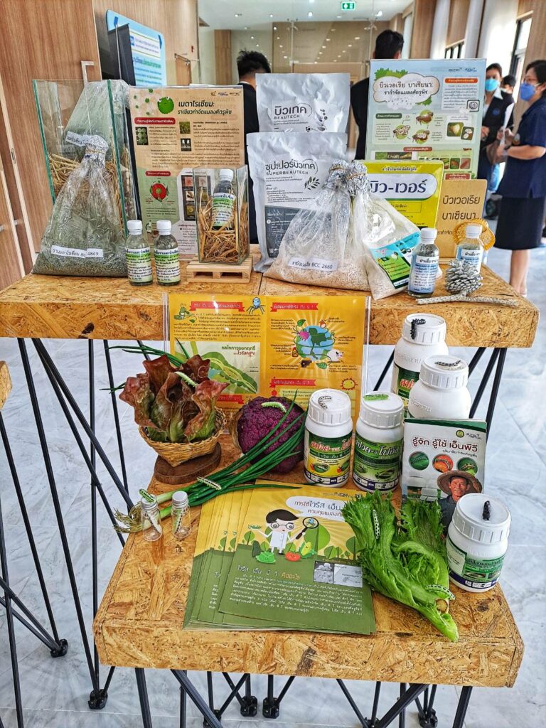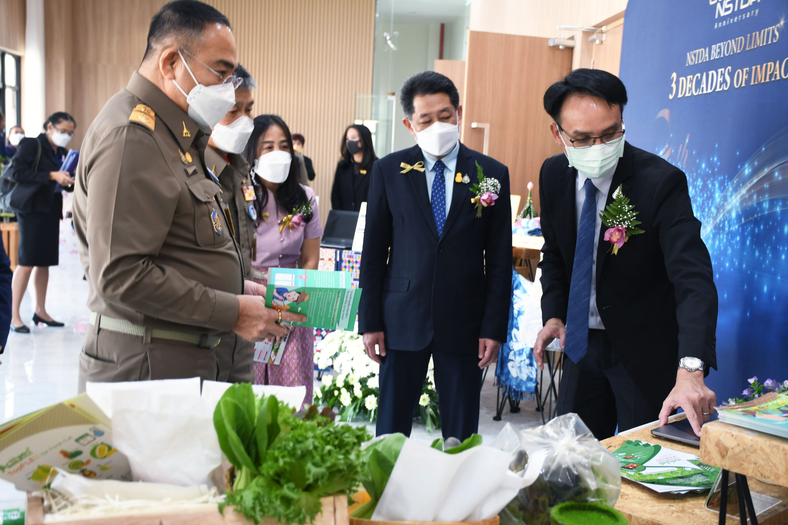 ทั้งนี้ สวทช. โดย ดร.ชัย วุฒิวิวัฒน์ชัย ผู้อำนวยการศูนย์เทคโนโลยีอิเล็กทรอนิกส์และคอมพิวเตอร์แห่งชาติ (เนคเทค) และ คุณวิราภรณ์ มงคลไชยสิทธิ์ ผู้อำนวยการสถาบันการจัดการเทคโนโลยีและนวัตกรรมเกษตร (สท.) เข้าร่วมในพิธีลงนามฯ พร้อมนำเสนอนิทรรศการผลงานวิจัยเทคโนโลยีด้านเกษตร เทคโนโลยีเกษตรอัจฉริยะ และเทคโนโลยีสิ่งทอ ได้แก่ สารชีวภัณฑ์ (บิวเวอเรีย เมตาไรเซียม ไวรัสเอ็นพีวี) ฟิล์มบรรจุภัณฑ์ ActivePAK ระบบแผนที่เกษตรเพื่อการบริหารจัดการเชิงรุกออนไลน์ (Agri Map) แฮนดี้เซ้นต์ (Handy Sense) กล่องควบคุมการให้น้ำ (Water Fit) แอปพลิเคชันชาวเกษตร นวนุรักษ์ (แพลตฟอร์มเพื่อการจัดเก็บข้อมูลทางวัฒนธรรมและความหลากหลายทางชีวภาพ) เอนไซม์เอนอีซ (ENZease) สเปรย์รีดผ้าสะท้อนน้ำ (I Guard Nano) และการผลิตสีผงธรรมชาติจากพืชในท้องถิ่น