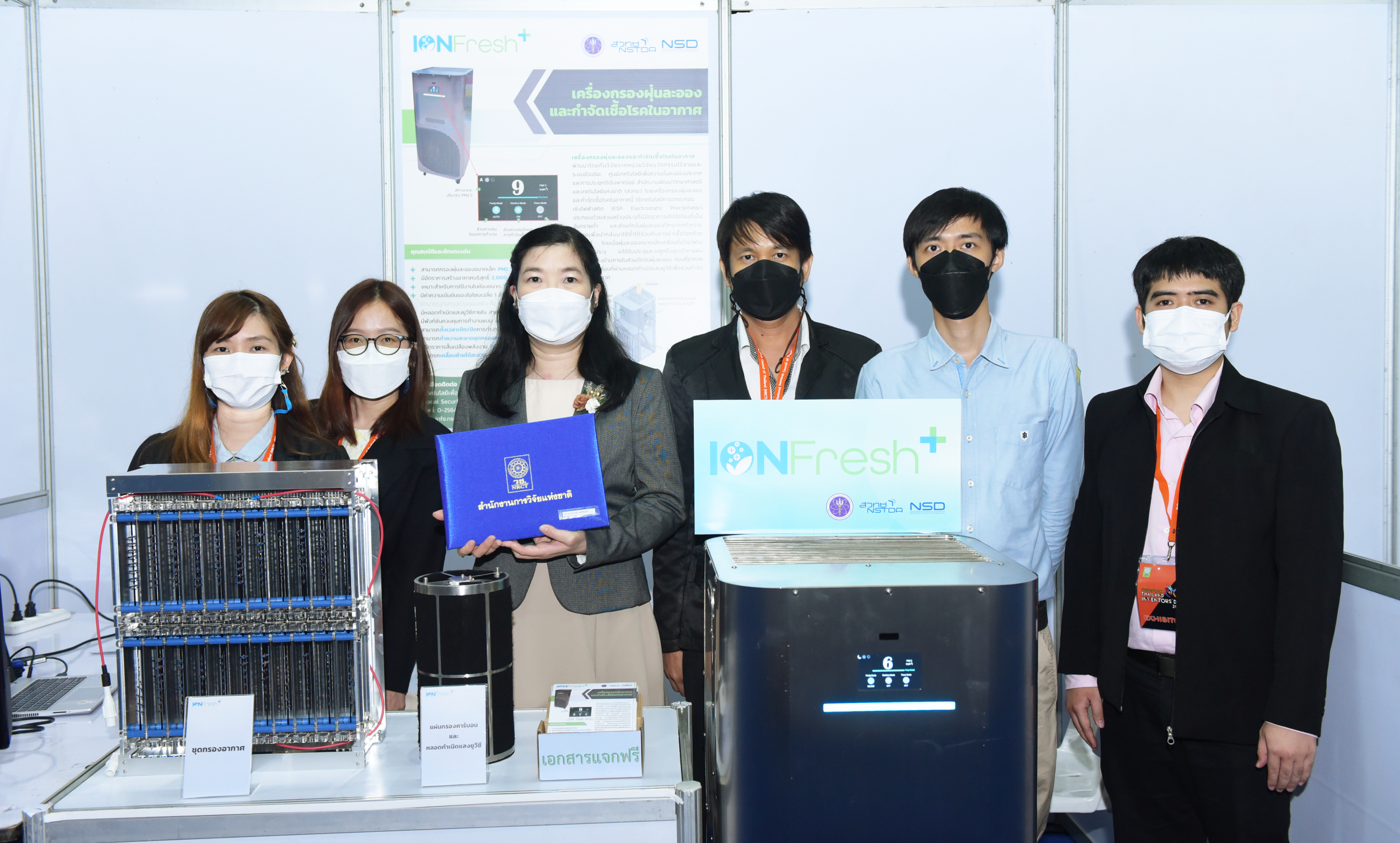 2. ผลงาน “เครื่องกรองฝุ่นละอองและกำจัดเชื้อโรคในอากาศ” โดย ดร. พรอนงค์ พงษ์ไพบูลย์ และคณะนักวิจัยฝ่ายนวัตกรรมไร้สายและระบบอัจฉริยะ (WISRD) และ