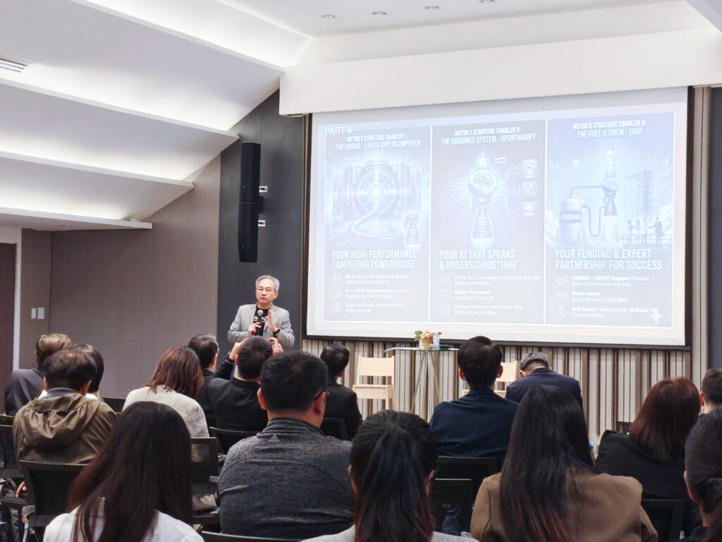 ผู้อำนวยการ สวทช. ได้เน้นย้ำว่า สวทช. พร้อมที่จะเป็นพันธมิตรและฐานสนับสนุนให้ภาคธุรกิจไทยก้าวข้ามขีดจำกัด และเติบโตอย่างยั่งยืนในเวทีโลก พร้อมชู 3 เครื่องมือสนับสนุนผู้ประกอบการไทยให้เข้าถึงเทคโนโลยีขั้นสูงโดยไม่ต้องลงทุนมหาศาลเองที่รัฐเตรียมไว้ให้ ไม่ว่าจะเป็นซูเปอร์คอมพิวเตอร์สมรรถนะสูง (LANTA) รองรับการประมวลผลข้อมูลขนาดใหญ่ เพื่อให้ SME สามารถเข้าถึงพลังการประมวลผลระดับโลกได้ OpenThaiGPT ซึ่งโมเดลภาษาขนาดใหญ่ (LLM) ที่พัฒนาเพื่อเข้าใจบริบทภาษาและวัฒนธรรมไทยอย่างลึกซึ้ง และโปรแกรมสนับสนุนการพัฒนาเทคโนโลยีและนวัตกรรม (ITAP) ซึ่งเป็นกลไกหนึ่งในการช่วยผู้ประกอบการ SME ไทยให้เข้าถึงเทคโนโลยีและผู้เชี่ยวชาญ เพื่อแก้ไขปัญหาและพัฒนานวัตกรรม โดยภาครัฐจะช่วยสนับสนุนค่าใช้จ่ายส่วนหนึ่งของโครงการ โดยที่ผ่านมาได้สนับสนุน SME ไปแล้วกว่า 19,000 ราย