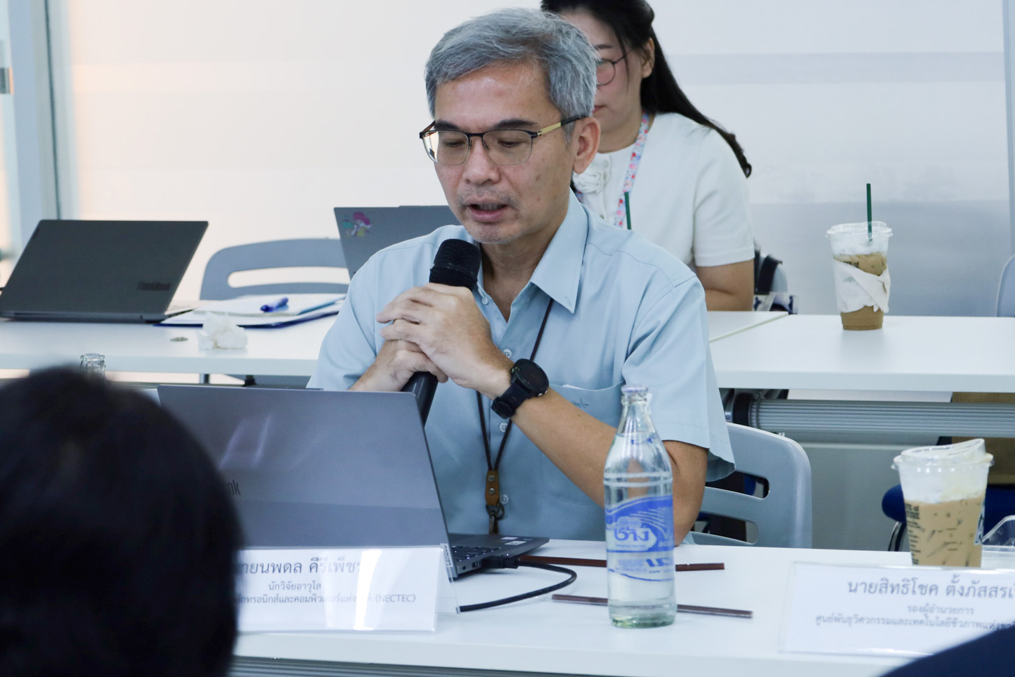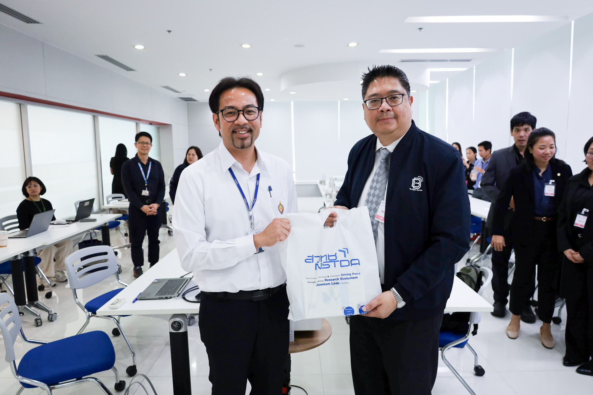 ในการนี้ ดร.วรวรงค์ รักเรืองเดช รองผู้อำนวยการ สวทช., ดร.นวลวรรณ สงวนศักดิ์ ผู้ช่วยผู้อำนวยการ สวทช., ดร.สิทธิโชค ตั้งภัสสรเรือง รองผู้อำนวยการศูนย์พันธุวิศวกรรมและเทคโนโลยีชีวภาพแห่งชาติ (BIOTEC) และนักวิจัยที่เกี่ยวข้อง ให้การต้อนรับคณะจากสำนักงบประมาณ ซึ่งนำโดย นายทศพร ดิเรกสุนทร ผู้อำนวยการกองประเมินผล 1 พร้อมด้วยนักวิเคราะห์งบประมาณและเจ้าหน้าที่ปฏิบัติงาน เพื่อรับฟังผลการดำเนินงานและเยี่ยมชมห้องปฏิบัติการวิจัย ณ อุทยานวิทยาศาสตร์ประเทศไทย