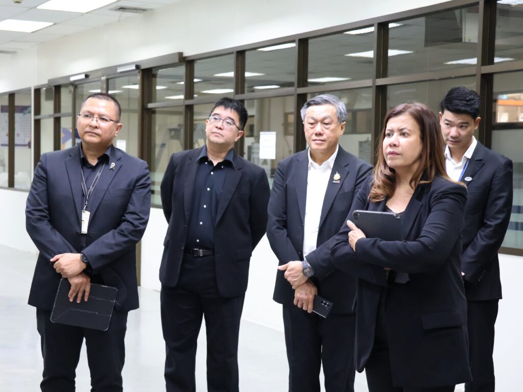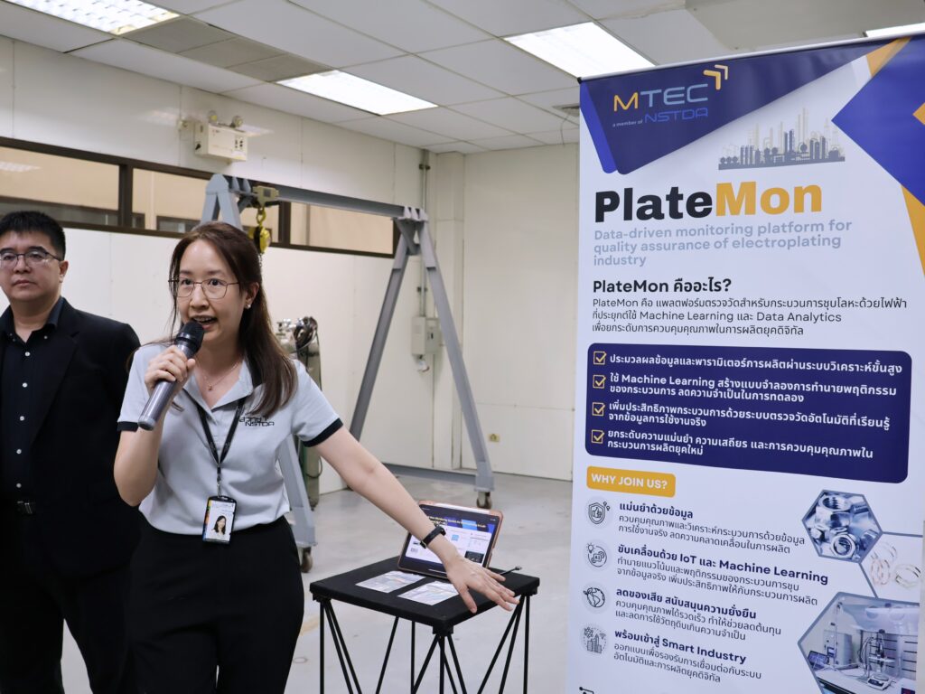 ในช่วงแรกของการเยี่ยมชม คณะผู้บริหารได้เยี่ยมชม Testbed ด้าน Modern Manufacturing ณ โรงงานต้นแบบ MTEC ซึ่งเป็นหนึ่งในยุทธศาสตร์การวิจัยและพัฒนาของ MTEC ภายใต้แผนงาน Modern Manufacturing and Modern Transport & Road Safety โดยมุ่งเพิ่มประสิทธิภาพการผลิต ลดต้นทุน พัฒนาผลิตภัณฑ์นวัตกรรมเชิงพาณิชย์ ตลอดจนสร้างเทคโนโลยีและธุรกิจใหม่ เพื่อสนับสนุนการปฏิรูปภาคอุตสาหกรรมไทยสู่ Industry 4.0 ผ่านการประยุกต์ใช้ระบบดิจิทัลและระบบอัตโนมัติในการผลิต อาทิ ระบบจัดเก็บและวิเคราะห์ข้อมูลเพื่อควบคุมคุณภาพในกระบวนการหล่ออะลูมิเนียม แพลตฟอร์ม PlateMon สำหรับกระบวนการชุบโลหะด้วยไฟฟ้าที่ใช้ Machine Learning และ Data Analytics รวมถึง VULCAN AI เทคโนโลยีการบำรุงรักษาเชิงคาดการณ์ที่ช่วยยกระดับประสิทธิภาพและความยั่งยืนของภาคอุตสาหกรรม โดยมี ดร.สิทธิกร ลาภาพงศ์ ผู้อำนวยการกลุ่มวิจัยการออกแบบเชิงวิศวกรรมและการคำนวณ, ดร.ต้องใจ ชูขจร, ดร.จอมขวัญ มั่นแน่ และ ดร.วรรษมน ภู่สกุลขจร นักวิจัย MTEC ร่วมนำเสนอผลงาน